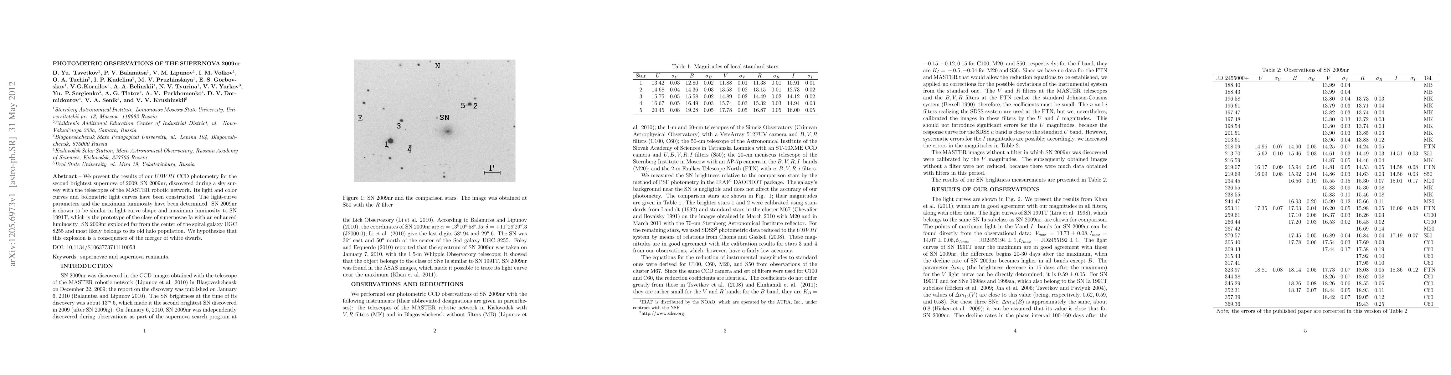 We present the results of our UBVRI CCD photometry for the second brightest supernova of 2009, SN 2009nr, discovered during a sky survey with the telescopes of the MASTER robotic network. Its light and color curves and bolometric light curves have been constructed. The light-curve parameters and the maximum luminosity have been determined. SN 2009nr is shown to be similar in light-curve shape and maximum luminosity to SN 1991T, which is the prototype of the class of supernovae Ia with an enhanced luminosity. SN 2009nr exploded far from the center of the spiral galaxy UGC 8255 and most likely belongs to its old halo population. We hypothesize that this explosion is a consequence of the merger of white dwarfs.