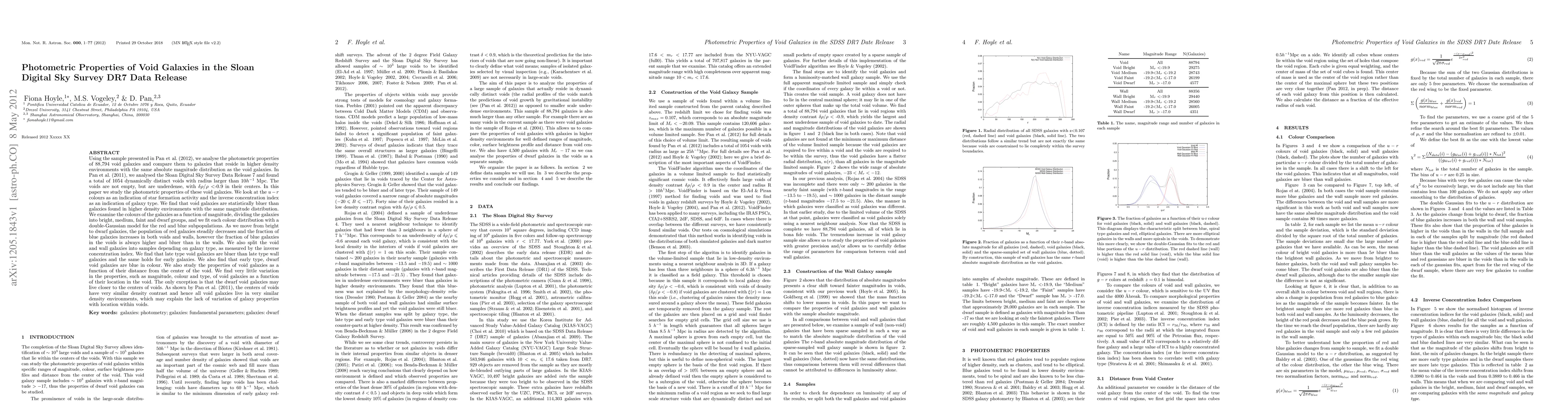 This paper analyzes the photometric properties of 88,794 void galaxies from the Sloan Digital Sky Survey DR7, finding that they are bluer than galaxies in denser environments with the same magnitude distribution. The study reveals that void galaxies, especially dwarf void galaxies, exhibit higher fractions of blue galaxies, indicating higher star formation activity.