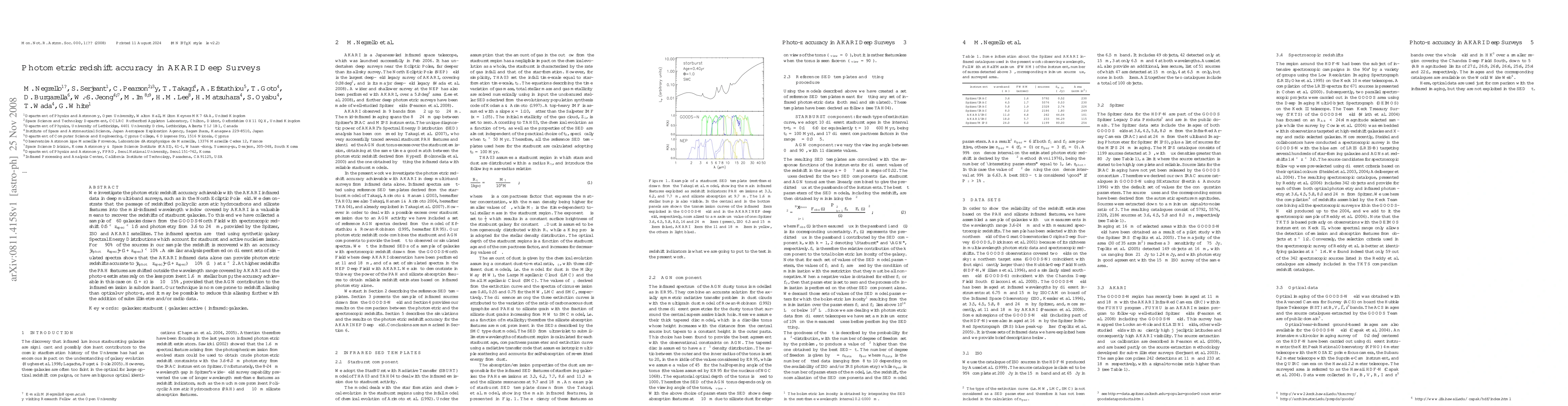 This paper investigates the accuracy of photometric redshifts derived from AKARI infrared data in deep surveys, showing that redshifted PAH and silicate features in mid-infrared spectra enable precise redshift recovery for starburst galaxies. The study achieves an accuracy of |z_phot-z_spec|/(1+z_spec)<~10% for ~90% of galaxies at z<~2, with potential for further improvement using additional submillimetre and radio data.