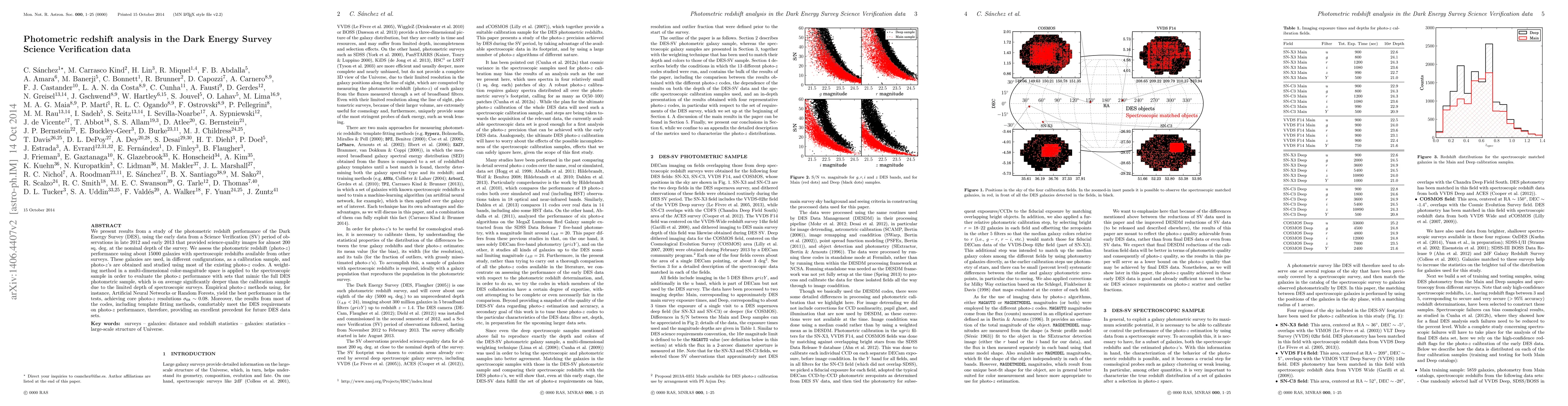 This study evaluates the photometric redshift performance of the Dark Energy Survey (DES) using early Science Verification data, assessing it against a spectroscopic sample of 15,000 galaxies. Empirical methods like Artificial Neural Networks yield the best results, achieving a core photo-$z$ resolution of $\sigma_{68} \sim 0.08$, and meeting DES requirements, setting a strong foundation for future data analysis.