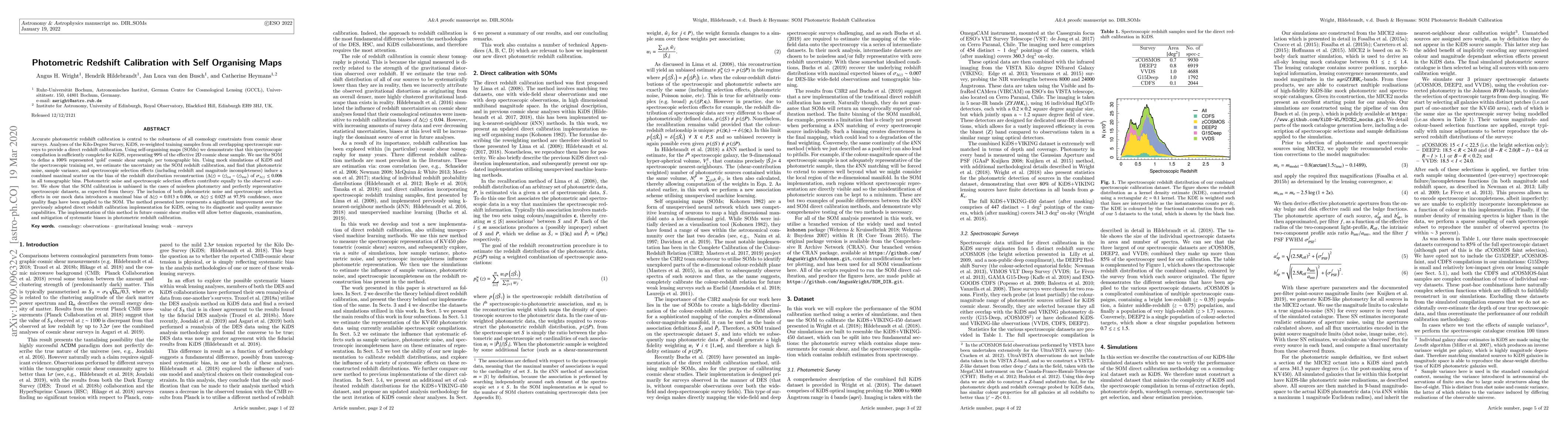 This study improves photometric redshift calibration for cosmic shear surveys using self-organising maps, reducing bias to 0.006 or less, and enabling better diagnosis of systematic errors.