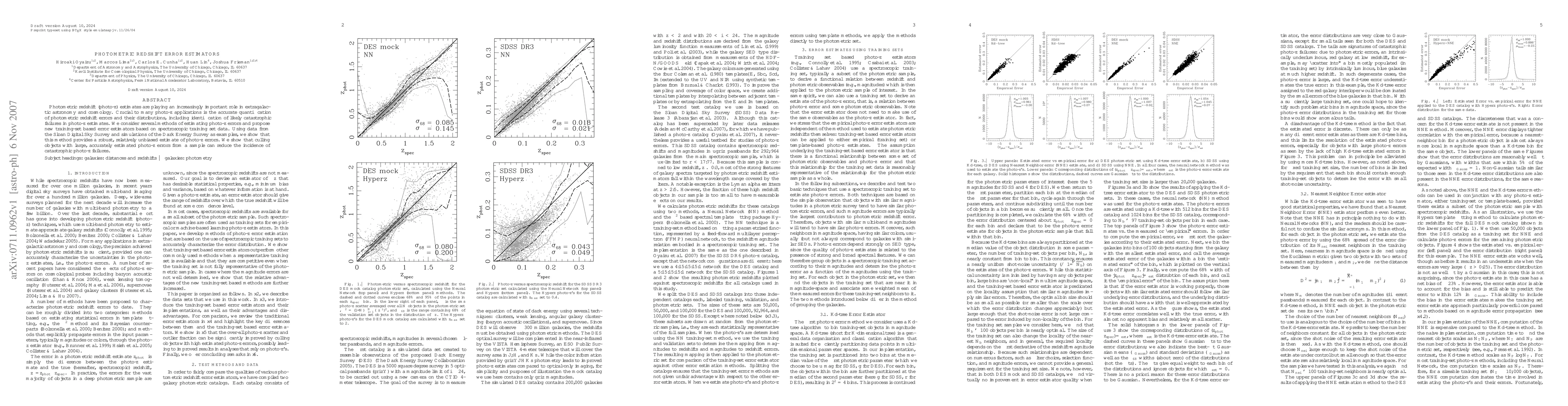 This paper proposes new training-set based error estimators for photometric redshift (photo-z) estimates, demonstrating their effectiveness using data from the Sloan Digital Sky Survey and simulations from the Dark Energy Survey. The method provides robust, relatively unbiased photo-z error estimates and helps reduce catastrophic failures by culling objects with large, accurately estimated errors.
