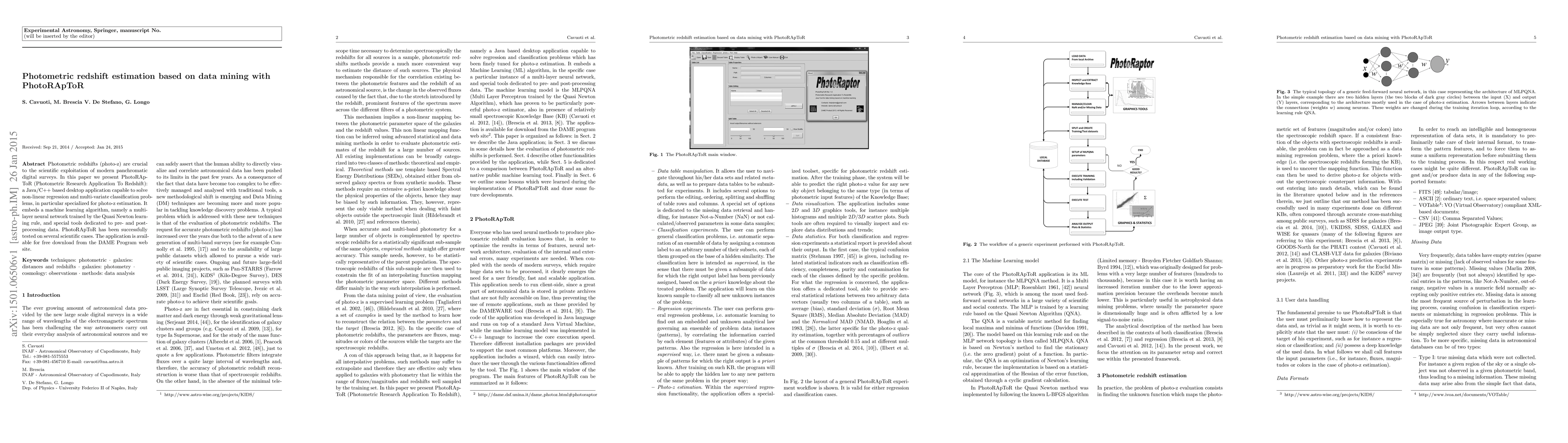 PhotoRApToR is a Java/C++ application for estimating photometric redshifts using machine learning, specifically a multilayer neural network trained with the Quasi Newton rule. It has been tested successfully and is available for free download.