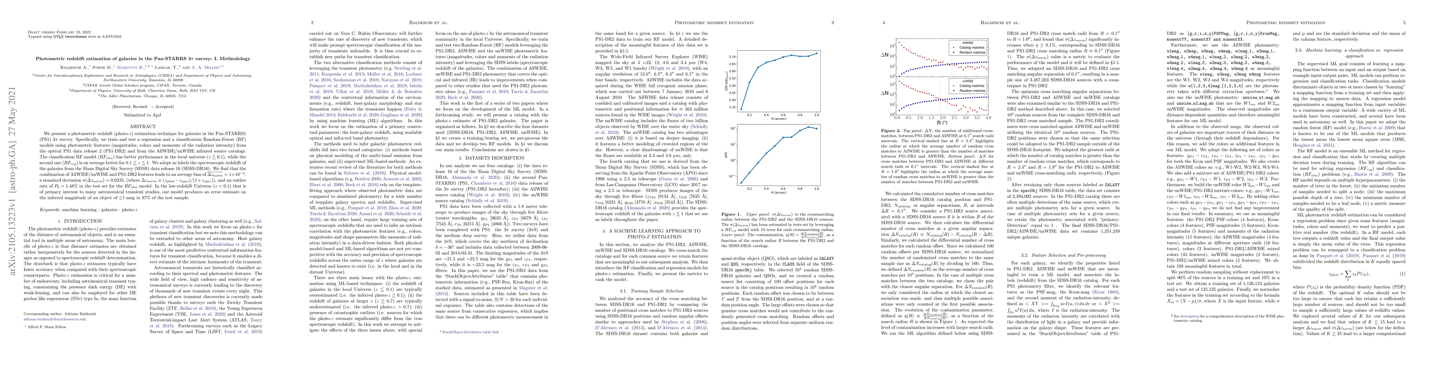 This paper introduces a photometric redshift estimation method for galaxies in the Pan-STARRS1 3π survey using Random-Forest models trained on optical and infrared data. The classification RF model performs better for low redshifts ($z\lesssim 0.1$), while the regression RF model is more accurate for intermediate redshifts ($0.1 \lesssim z\lesssim 1$).