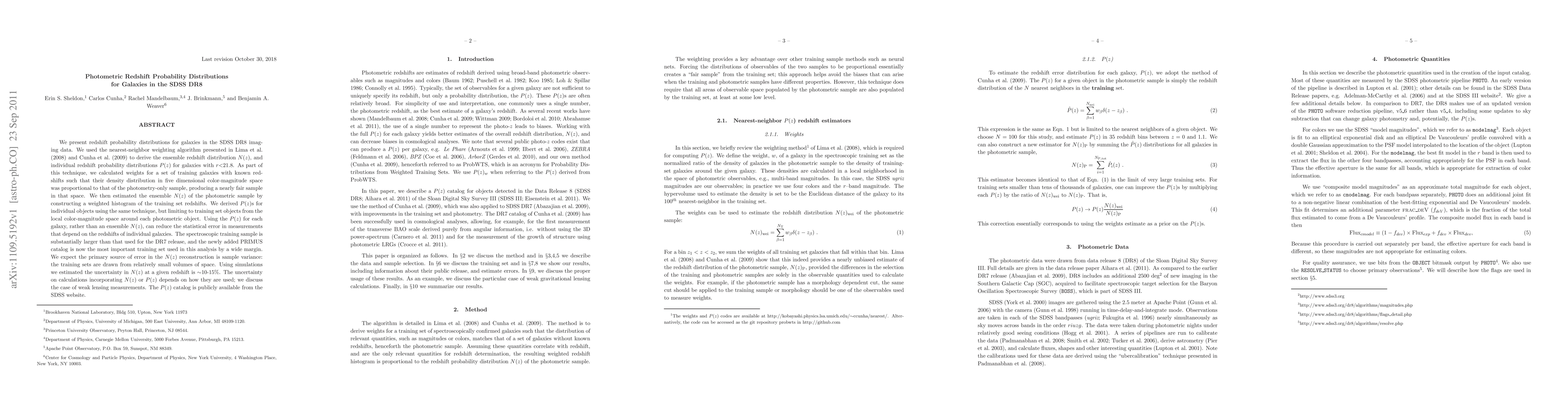 This paper presents redshift probability distributions for galaxies in the SDSS DR8 using a nearest-neighbor weighting algorithm. The authors derive both ensemble and individual redshift distributions, which can reduce statistical errors in measurements relying on individual galaxy redshifts. The spectroscopic training sample is significantly larger than previous releases, with the PRIMUS catalog now being the most important training set.