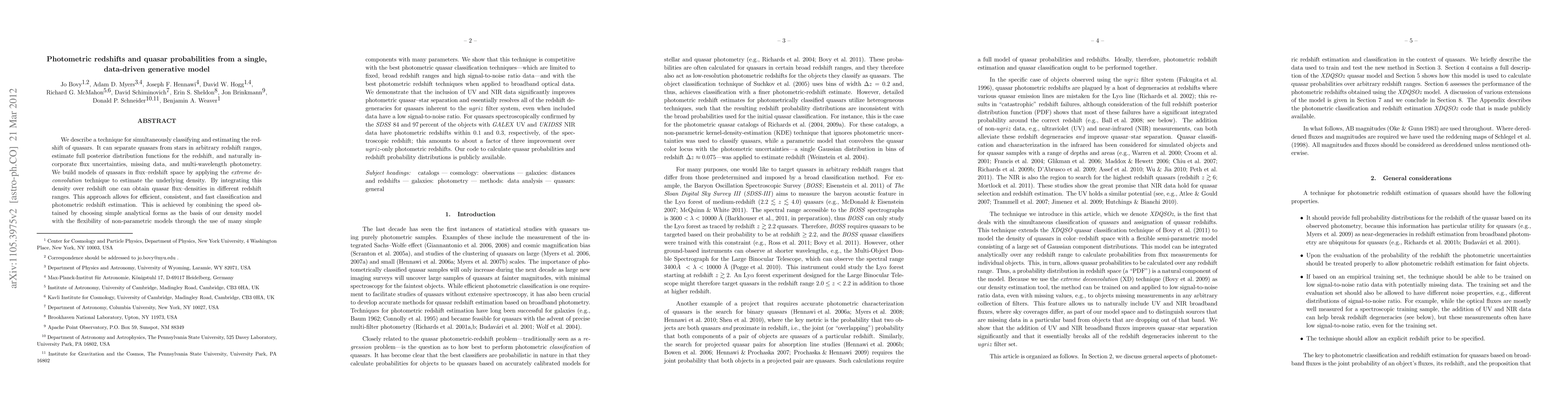 This paper presents a data-driven generative model that efficiently classifies quasars and estimates their redshifts, incorporating uncertainties and multi-wavelength data. The model's flexibility and speed improve quasar-star separation and resolve redshift degeneracies, achieving competitive accuracy with existing techniques.