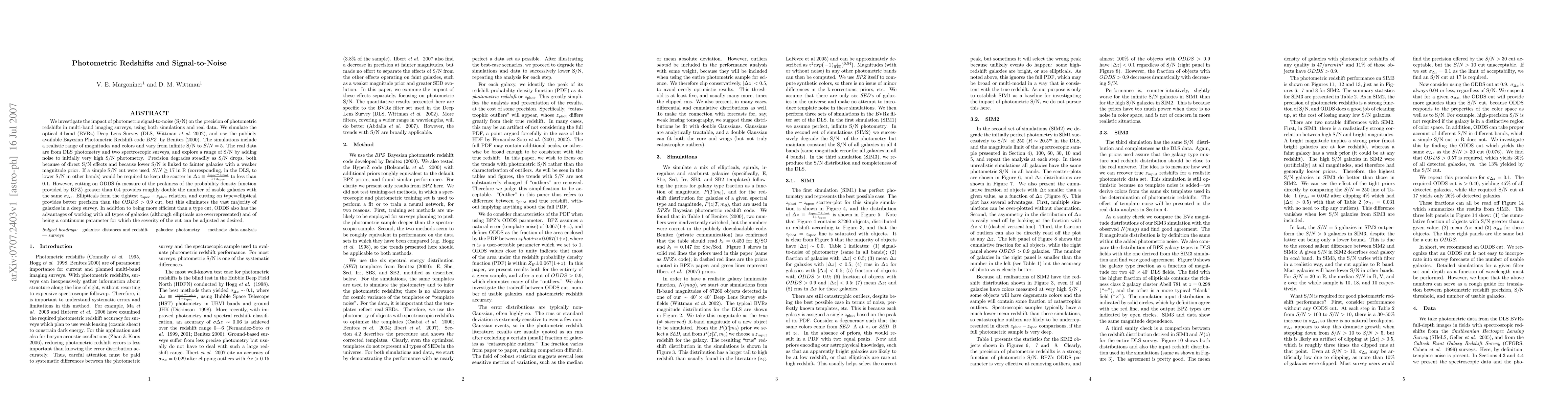 We investigate the impact of photometric signal-to-noise (S/N) on the precision of photometric redshifts in multi-band imaging surveys, using both simulations and real data. We simulate the optical 4-band (BVRz) Deep Lens Survey (DLS, Wittman etal 2002), and use the publicly available Bayesian Photometric Redshift code BPZ by Benitez (2000). The simulations include a realistic range of magnitudes and colors and vary from infinite S/N to S/N=5. The real data are from DLS photometry and two spectroscopic surveys, and explore a range of S/N by adding noise to initially very high S/N photometry. Precision degrades steadily as S/N drops, both because of direct S/N effects and because lower S/N is linked to fainter galaxies with a weaker magnitude prior. If a simple S/N cut were used, S/N>17 in R (corresponding, in the DLS, to lower S/N in other bands) would be required to keep the scatter in Deltaz = (zspec-zphot)/(1+zspec) to less than 0.1. However, cutting on ODDS (a measure of the peakiness of the probability density function provided by BPZ) greater than 0.4 provides roughly double the number of usable galaxies with the same scatter. Ellipticals form the tightest zspec-zphot relation, and cutting on type=elliptical provides better precision than the ODDS>0.9 cut, but this eliminates the vast majority of galaxies in a deep survey. In addition to being more efficient than a type cut, ODDS also has the advantages of working with all types of galaxies (although ellipticals are overrepresented) and of being a continuous parameter for which the severity of the cut can be adjusted as desired.