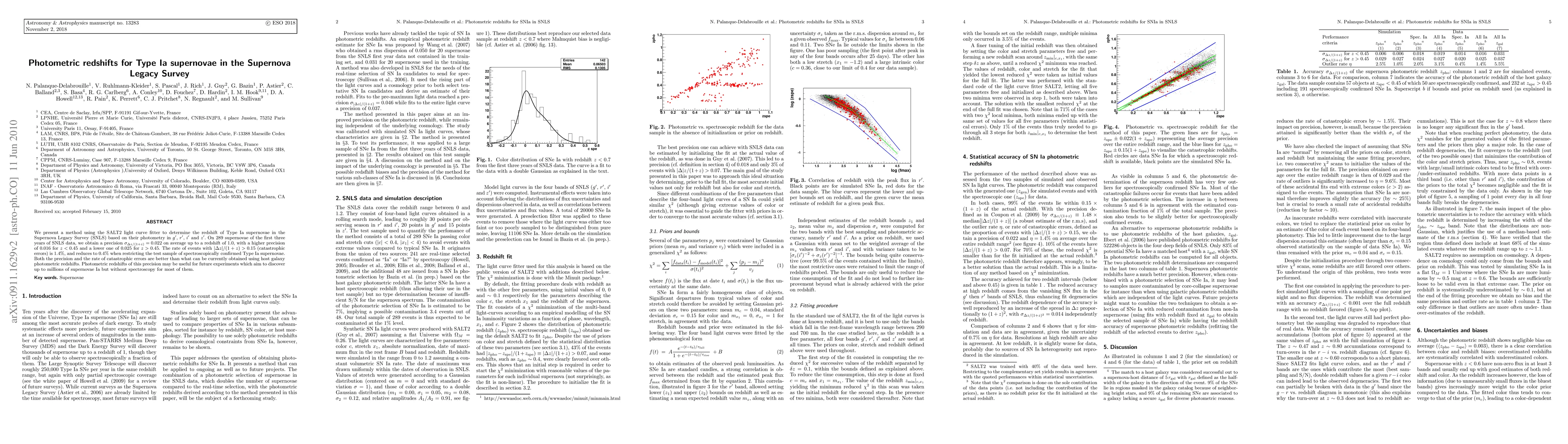 This paper introduces a SALT2 light curve fitter method for determining photometric redshifts of Type Ia supernovae in the Supernova Legacy Survey, achieving a precision of $\sigma_{\Delta z/(1+z)} = 0.022$ up to redshift 1.0, with better precision for lower redshifts. The method shows lower catastrophic error rates compared to host galaxy photometric redshifts.