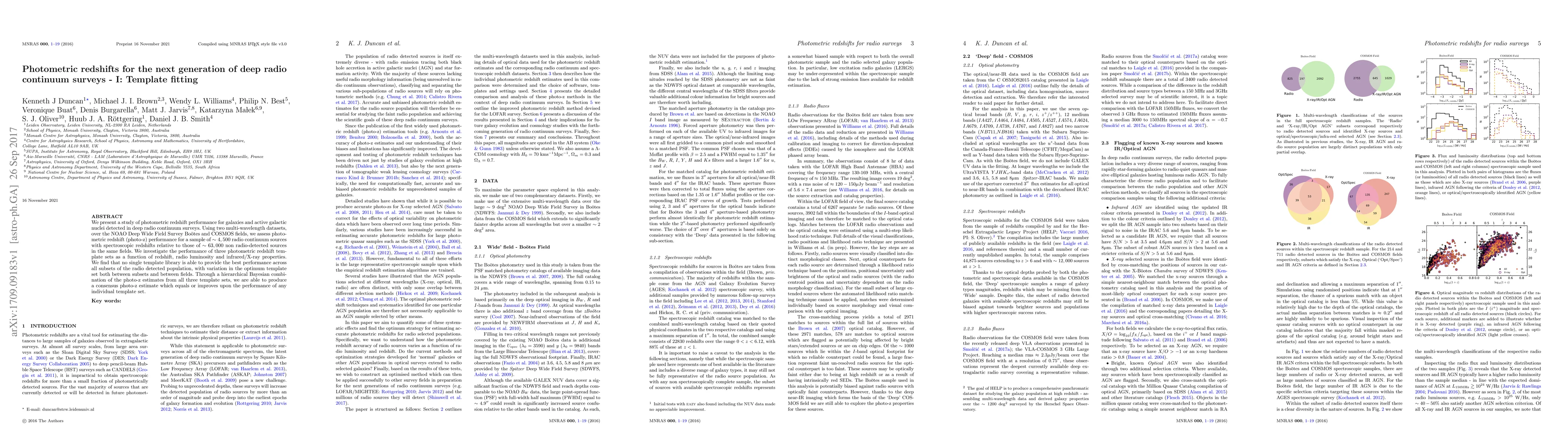 This study evaluates photometric redshift performance for galaxies and active galactic nuclei in deep radio continuum surveys, finding that no single template library provides the best results across all subsets. A hierarchical Bayesian combination of photo-z estimates from three template sets yields a consensus estimate that matches or exceeds individual template performance.