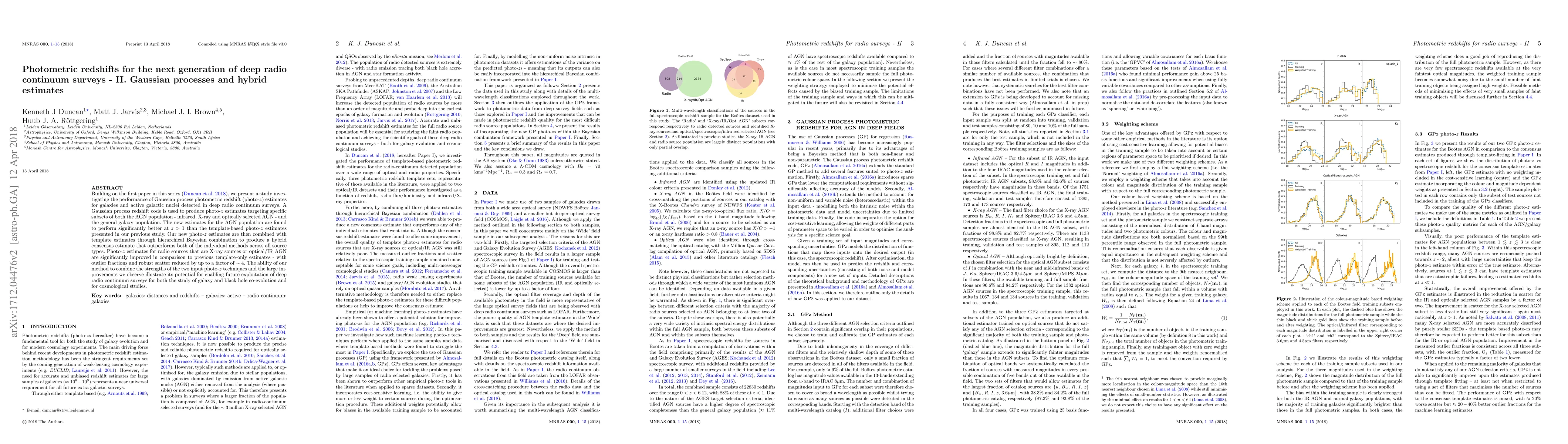 This paper investigates Gaussian process photometric redshift estimates for galaxies and active galactic nuclei in deep radio continuum surveys, finding significant improvements over previous template-based estimates. A hybrid consensus estimate combining Gaussian processes and templates outperforms individual methods, particularly for X-ray and optical/IR AGN, reducing outlier fractions and robust scatter by up to a factor of ~4.