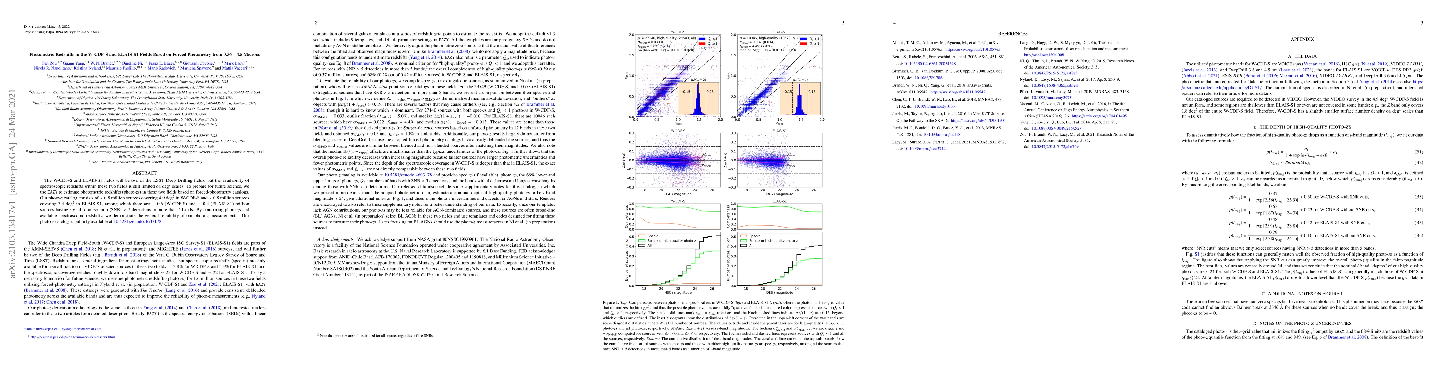 Researchers created a large catalog of photometric redshifts in two fields using forced photometry from 0.36 to 4.5 microns, aiming to support future science with limited spectroscopic data.