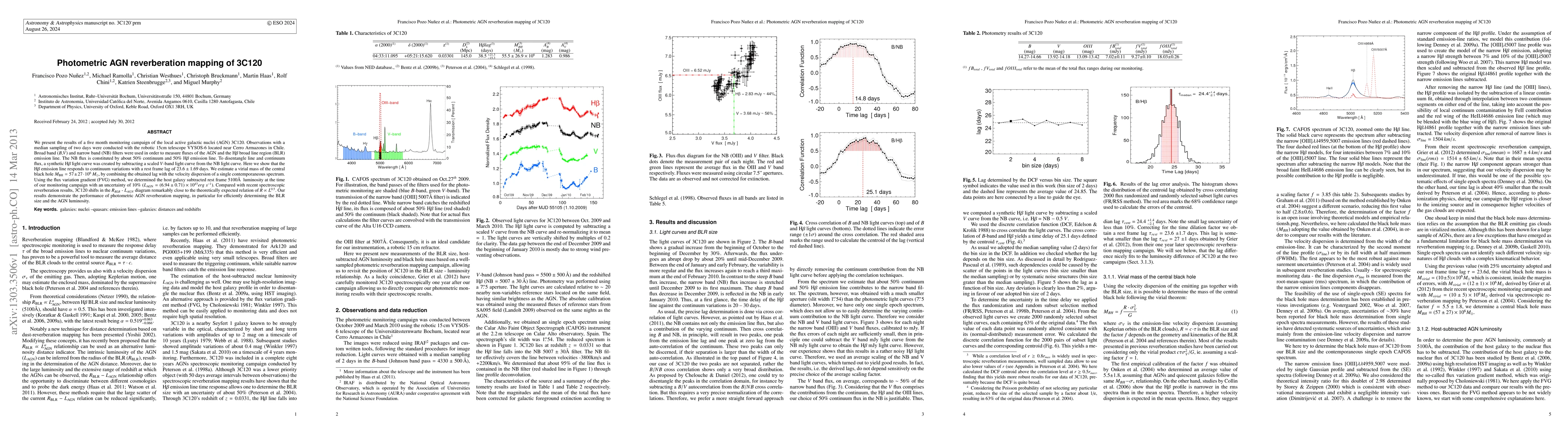 Researchers used a robotic telescope to monitor 3C120, an active galactic nucleus, for five months and found that the emission line responds to changes in the continuum light with a delay of 23.6 days. This method successfully determined the black hole's mass and the AGN's luminosity.