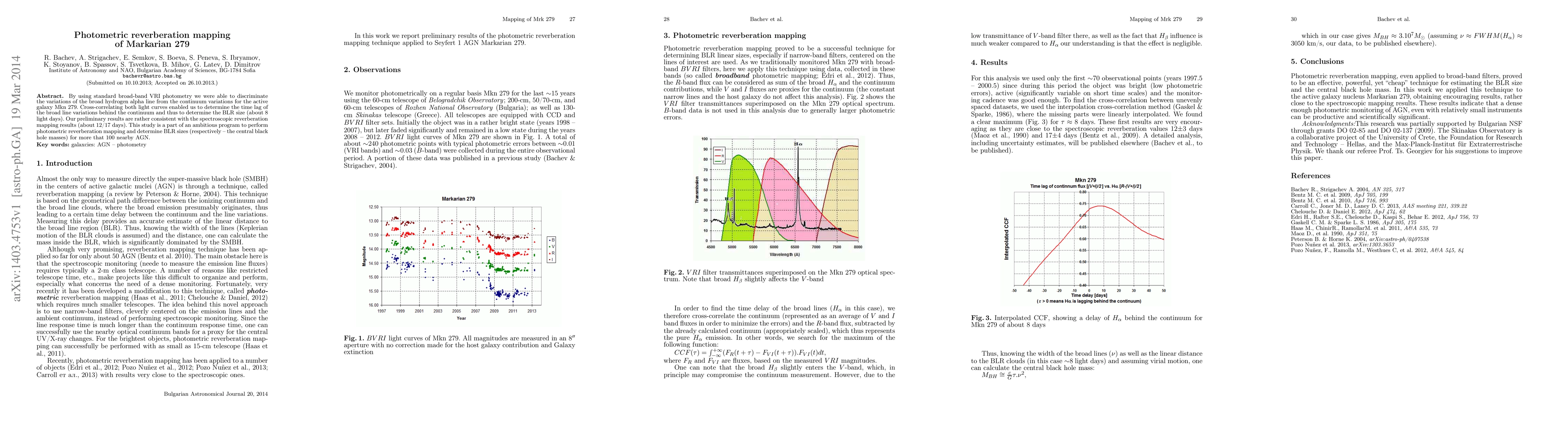 Researchers used photometry to map the size of Markarian 279's broad hydrogen alpha line, finding a size of approximately 8 light days and consistent results with spectroscopic reverberation mapping.