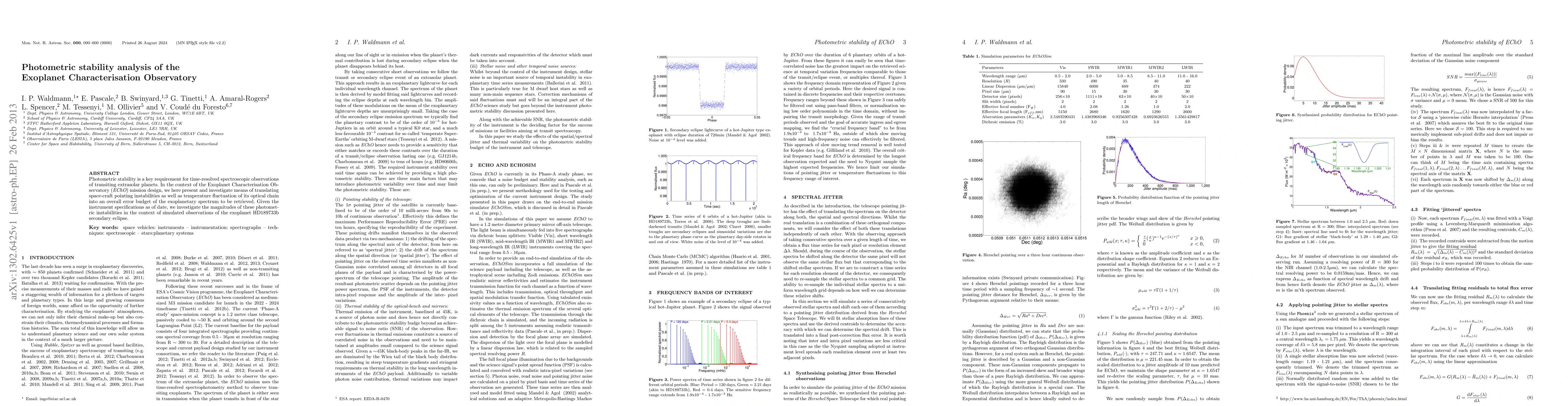 This paper analyzes photometric stability for the Exoplanet Characterisation Observatory (EChO) mission, focusing on translating spacecraft pointing instabilities and temperature fluctuations into an error budget for exoplanetary spectrum retrieval. The study evaluates these instabilities using simulated observations of the exoplanet HD189733b during its secondary eclipse.