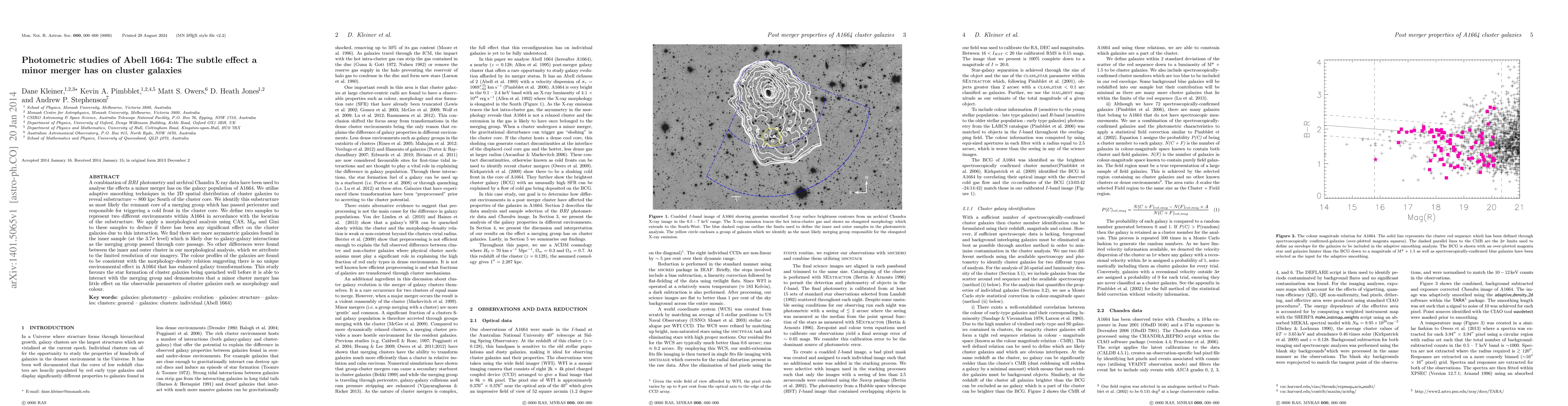 A combination of $BRI$ photometry and archival Chandra X-ray data have been used to analyse the effects a minor merger has on the galaxy population of A1664. We utilise adaptive smoothing techniques in the 2D spatial distribution of cluster galaxies to reveal substructure $\sim$ 800 kpc South of the cluster core. We identify this substructure as most likely the remnant core of a merging group which has passed pericentre and responsible for triggering a cold front in the cluster core. We define two samples to represent two different environments within A1664 in accordance with the location of the substructure. We apply a morphological analysis using CAS, M$_{20}$ and Gini to these samples to deduce if there has been any significant effect on the cluster galaxies due to this interaction. We find there are more asymmetric galaxies found in the inner sample (at the 3.7$\sigma$ level) which is likely due to galaxy-galaxy interactions as the merging group passed through core passage. No other differences were found between the inner and outer cluster in our morphological analysis, which we attribute to the limited resolution of our imagery. The colour profiles of the galaxies are found to be consistent with the morphology-density relation suggesting there is no unique environmental effect in A1664 that has enhanced galaxy transformations. This study favours the star formation of cluster galaxies being quenched well before it is able to interact with the merging group and demonstrates that a minor cluster merger has little effect on the observable parameters of cluster galaxies such as morphology and colour.