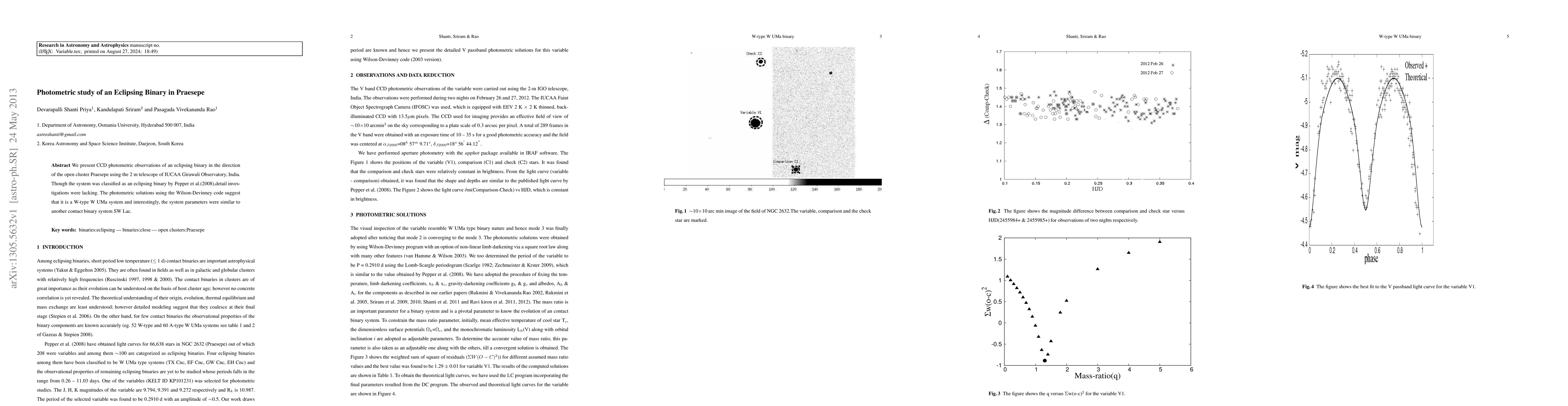 We present CCD photometric observations of an eclipsing binary in the direction of the open cluster Praesepe using the 2 m telescope of IUCAA Girawali Observatory, India. Though the system was classified as an eclipsing binary by Pepper et al.(2008),detail investigations were lacking. The photometric solutions using the Wilson-Devinney code suggest that it is a W-type W UMa system and interestingly, the system parameters were similar to another contact binary system SW Lac.