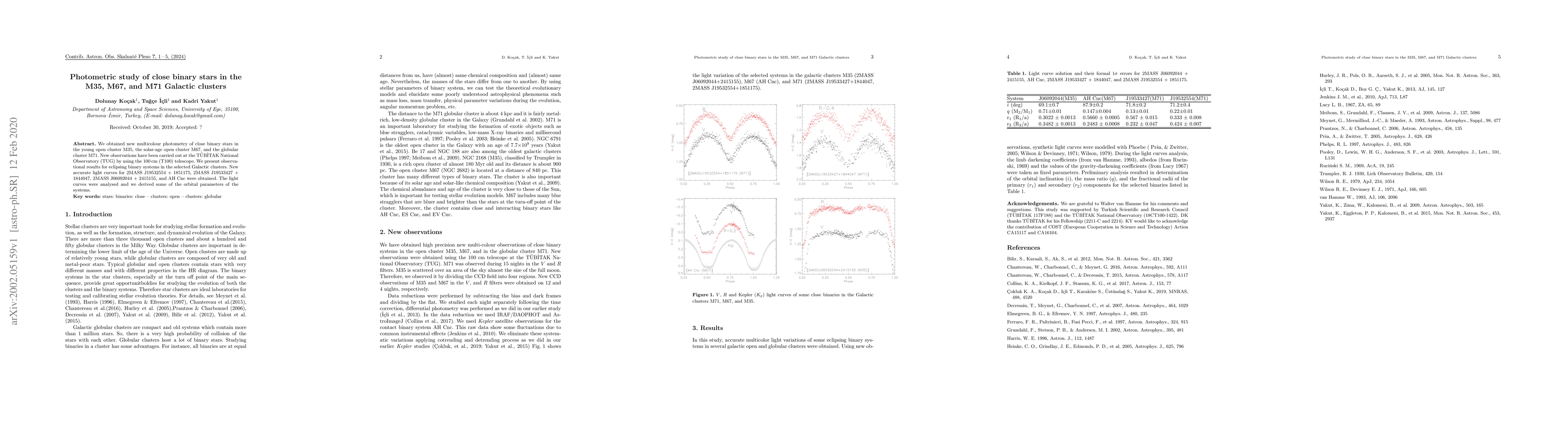 This research presents new multicolour photometry of close binary stars in the open clusters M35 and M67, and the globular cluster M71, obtained using the T100 telescope at TUG National Observatory. Accurate light curves for selected eclipsing binaries were derived, and analysis yielded new orbital parameters for these systems.
