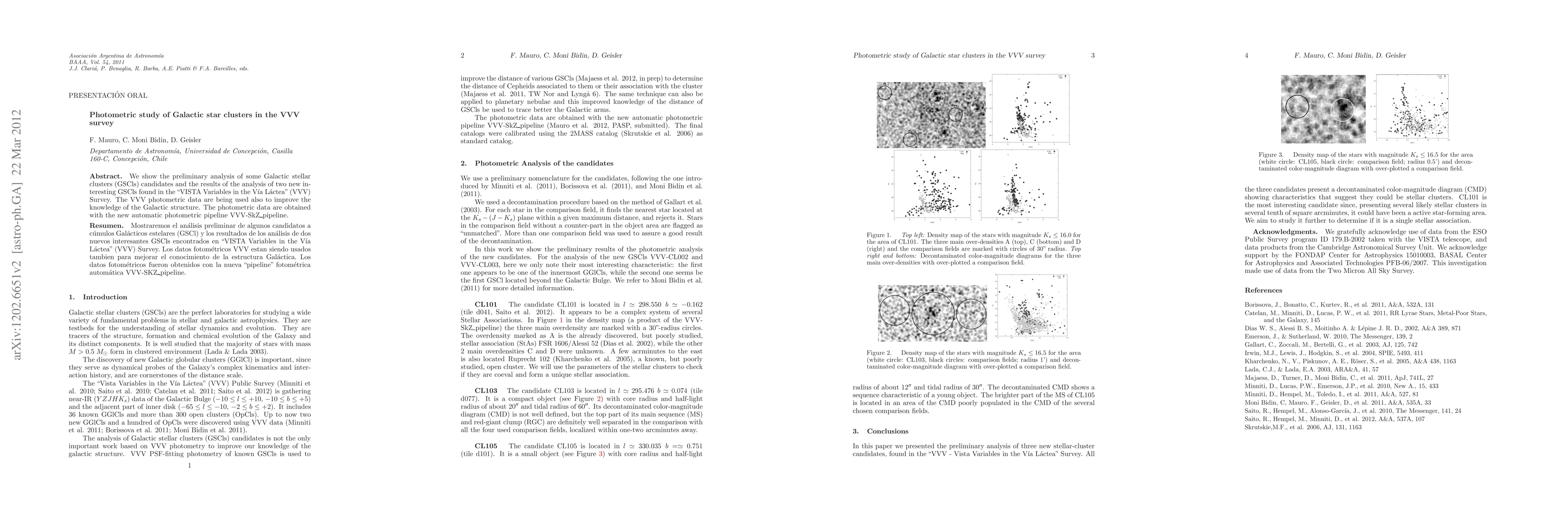 This paper presents an initial analysis of Galactic star clusters identified in the VVV Survey, focusing on two new clusters, and utilizes the VVV-SkZ_pipeline for photometric data. The study aims to enhance understanding of the Galactic structure through these findings.