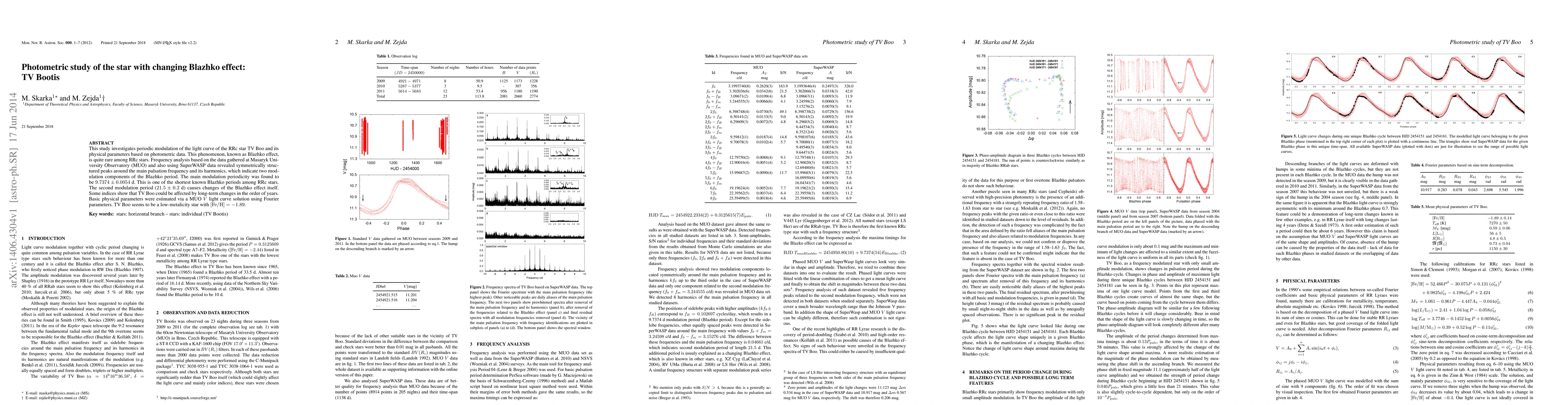 This study analyzes the Blazhko effect in the RRc star TV Boois, revealing a modulation period of 9.7374(54) days and a secondary modulation period of 21.5(2) days, indicating rare Blazhko behavior among RRc stars. TV Boo is estimated to have low metallicity with [Fe/H]=-1.89.