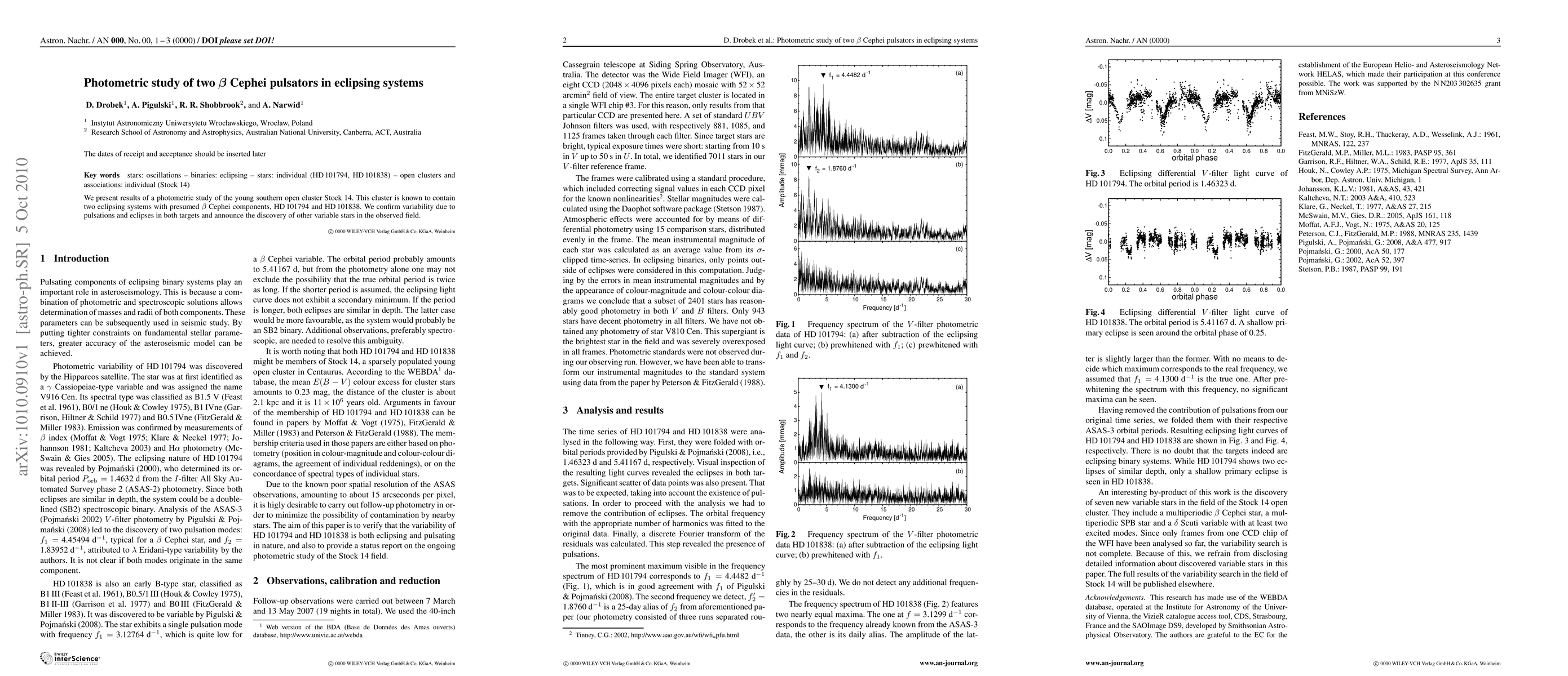 We present results of a photometric study of the young southern open cluster Stock 14. This cluster is known to contain two eclipsing systems with presumed beta Cephei components, HD 101794 and HD 101838. We confirm variability due to pulsations and eclipses in both targets and announce the discovery of other variable stars in the observed field.