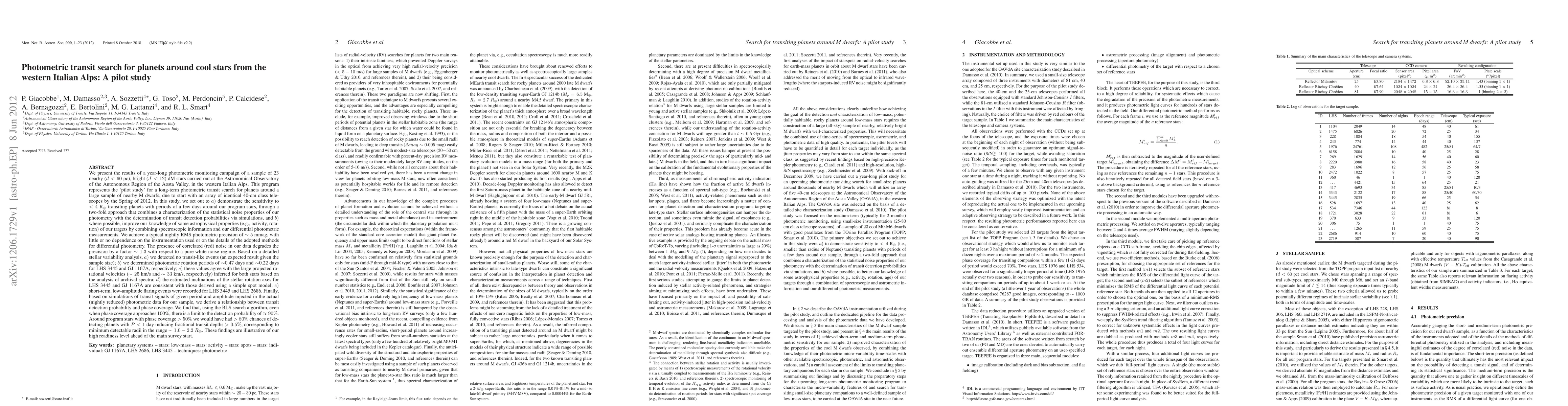 [ABRIDGED] In this study, we set out to a) demonstrate the sensitivity to <4 R_E transiting planets with periods of a few days around our program stars, and b) improve our knowledge of some astrophysical properties(e.g., activity, rotation) of our targets by combining spectroscopic information and our differential photometric measurements. We achieve a typical nightly RMS photometric precision of ~5 mmag, with little or no dependence on the instrumentation used or on the details of the adopted methods for differential photometry. The presence of correlated (red) noise in our data degrades the precision by a factor ~1.3 with respect to a pure white noise regime. Based on a detailed stellar variability analysis, a) we detected no transit-like events; b) we determined photometric rotation periods of ~0.47 days and ~0.22 days for LHS 3445 and GJ 1167A, respectively; c) these values agree with the large projected rotational velocities (~25 km/s and ~33 km/s, respectively) inferred for both stars based on the analysis of archival spectra; d) the estimated inclinations of the stellar rotation axes for LHS 3445 and GJ 1167A are consistent with those derived using a simple spot model; e) short-term, low-amplitude flaring events were recorded for LHS 3445 and LHS 2686. Finally, based on simulations of transit signals of given period and amplitude injected in the actual (nightly reduced) photometric data for our sample, we derive a relationship between transit detection probability and phase coverage. We find that, using the BLS search algorithm, even when phase coverage approaches 100%, there is a limit to the detection probability of ~90%. Around program stars with phase coverage >50% we would have had >80% chances of detecting planets with P<1 day inducing fractional transit depths >0.5%, corresponding to minimum detectable radii in the range 1.0-2.2 R_E. [ABRIDGED]