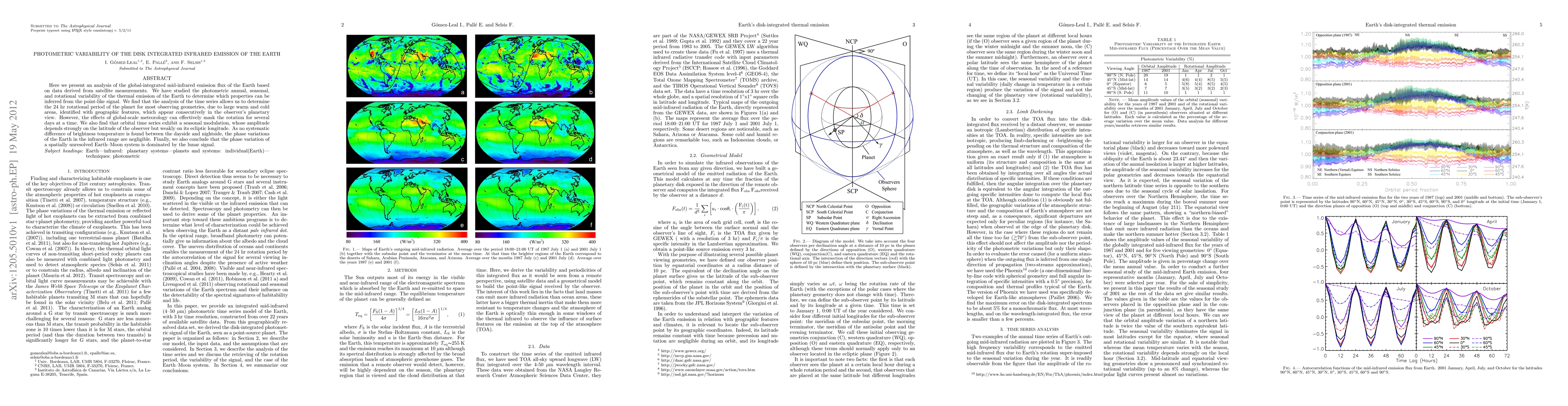 This study analyzes Earth's mid-infrared emission flux from satellite data, revealing annual, seasonal, and rotational variability. The analysis shows that Earth's rotation can be determined from the infrared signal, though global meteorology can obscure it temporarily. Seasonal modulation varies with observer latitude but not ecliptic longitude.