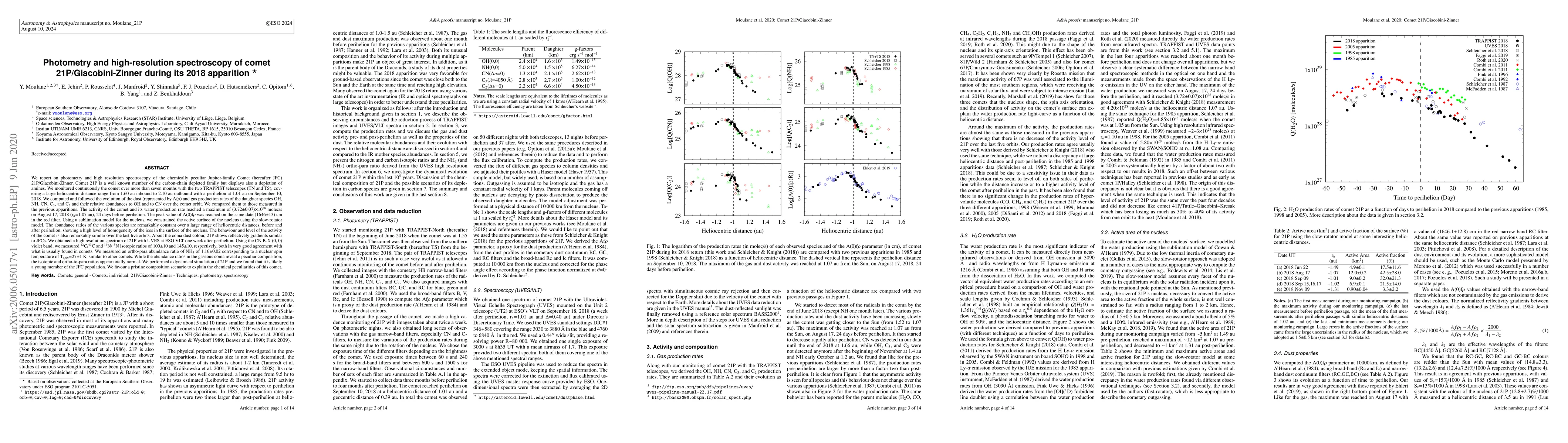 Scientists studied comet 21P/Giacobini-Zinner during its 2018 apparition, finding high activity levels with peak water production on August 17, and consistent ice composition across its orbit.