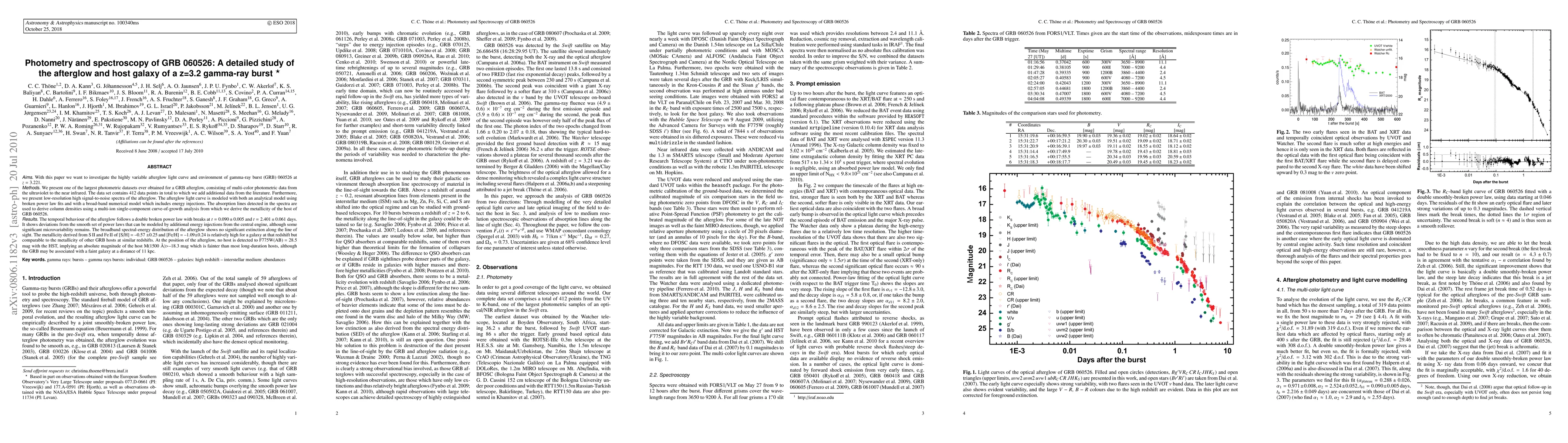 This study investigates GRB 060526's afterglow and host galaxy at z=3.2, using a large photometric dataset and low-resolution spectra to analyze the afterglow light curve and derive the metallicity of the host.