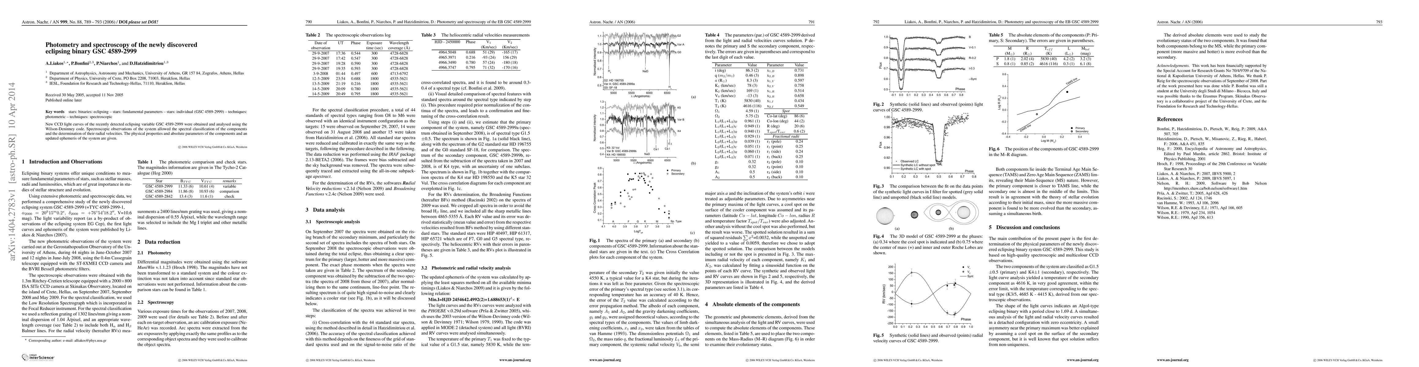 New CCD light curves of the recently detected eclipsing variable GSC 4589-2999 were obtained and analysed using the Wilson-Deninney code. Spectroscopic observations of the system allowed the spectral classification of the components and the determination of their radial velocities. The physical properties and absolute parameters of the components and an updated ephemeris of the system are given.