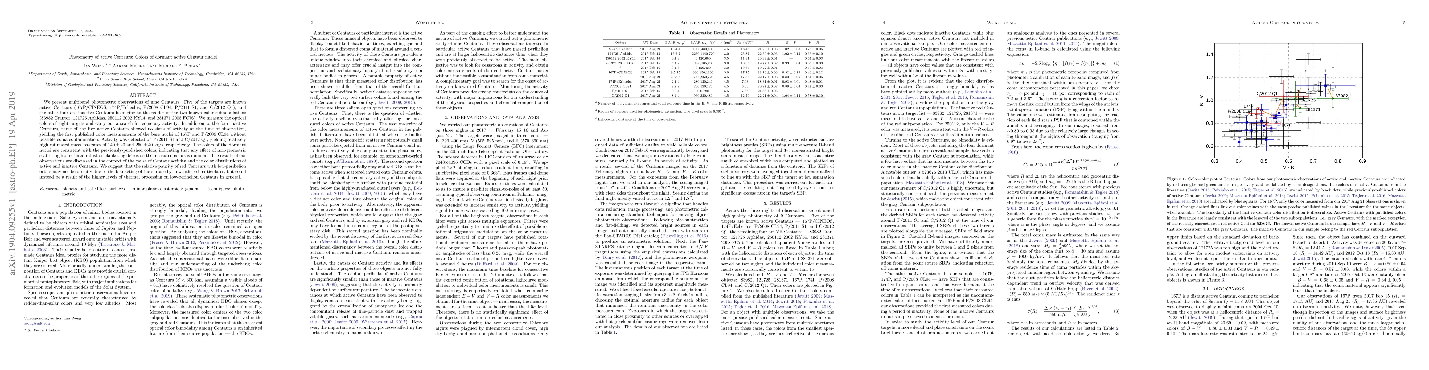 This study analyzes the colors of Centaur nuclei using multiband photometric observations, revealing relatively high mass loss rates for two active Centaurs and consistent colors for dormant nuclei, suggesting that thermal processing is a key factor in determining Centaur activity.