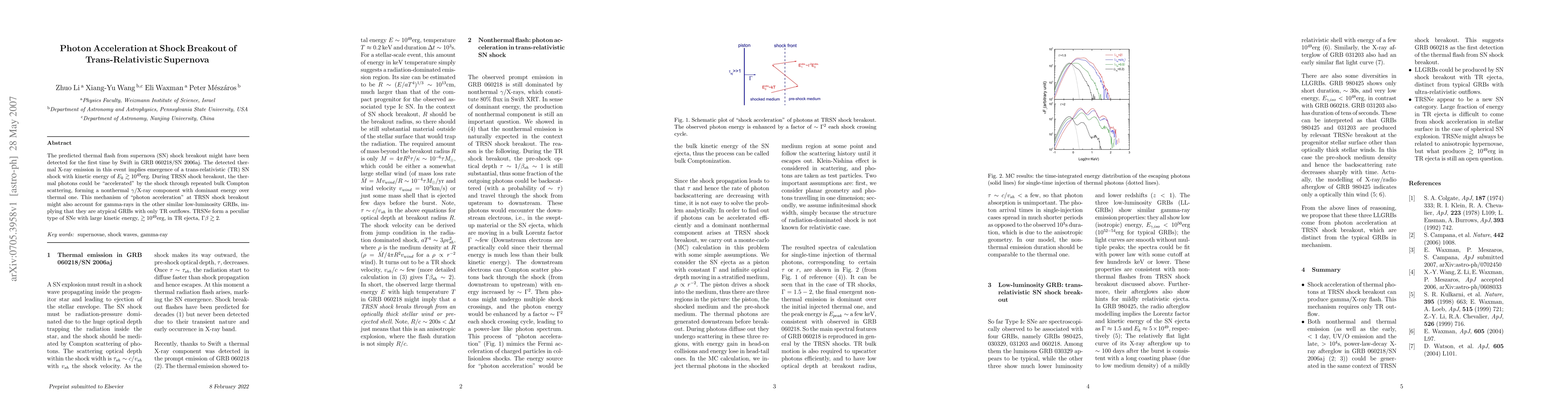 This paper explores the detection of a thermal flash from the shock breakout of a trans-relativistic supernova, suggesting it may have been observed in GRB 060218/SN 2006aj. It proposes that photons are accelerated by the shock through repeated Compton scattering, generating a nonthermal gamma/X-ray component.