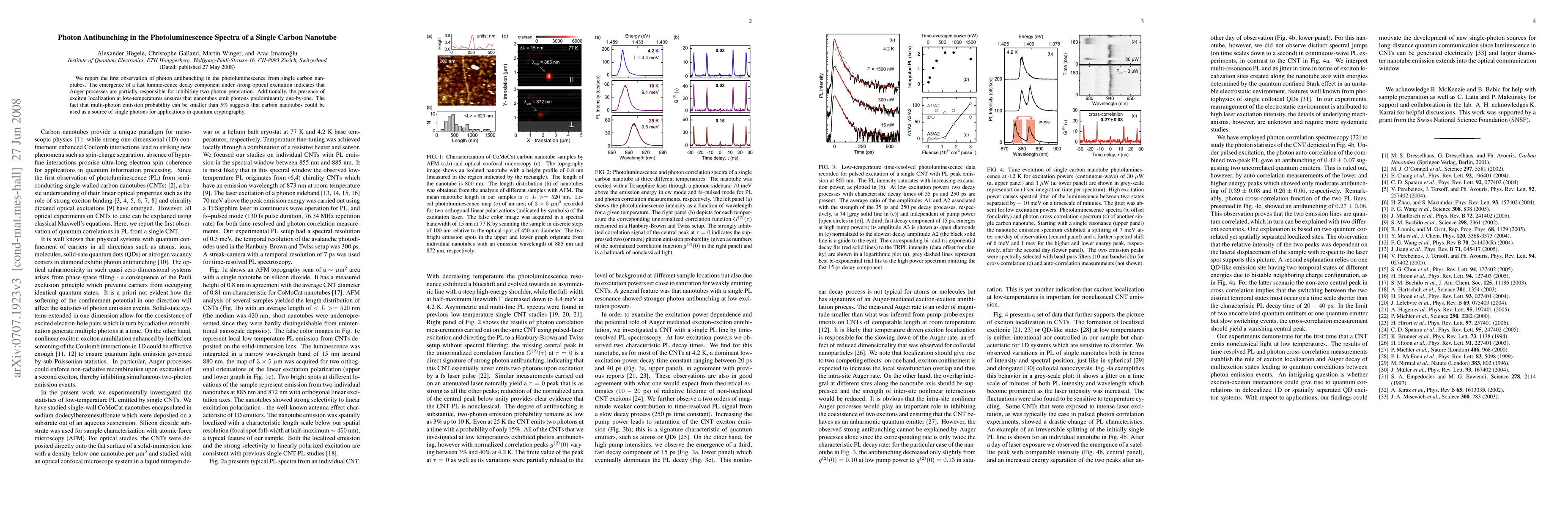 This paper reports the first observation of photon antibunching in the photoluminescence of single carbon nanotubes, indicating efficient single-photon emission. The study finds that Auger processes and exciton localization contribute to this effect, suggesting potential for carbon nanotubes in quantum cryptography.