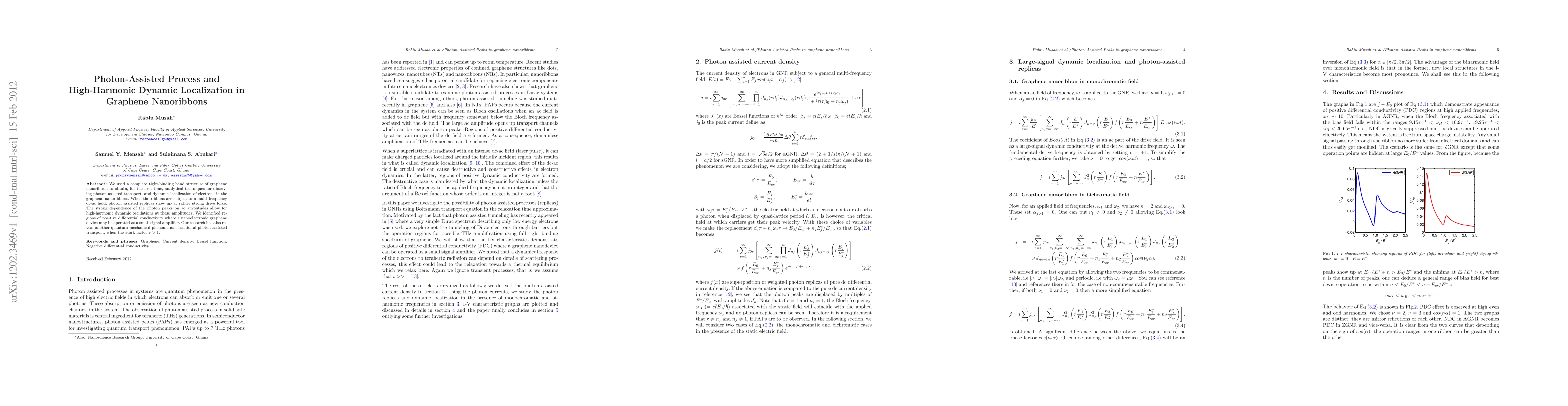 We used a complete tight-binding band structure of graphene nanoribbon to obtain, for the first time, analytical techniques for observing photon assisted transport, and dynamic localization of electrons in the graphene nanoribbons. When the ribbons are subject to a multi-frequency dc-ac field, photon assisted replicas show up at rather strong drive force. The strong dependence of the photon peaks on ac amplitudes allow for high-harmonic dynamic oscillations at these amplitudes. We identified regions of positive differential conductivity where a nanoelectronic graphene device may be operated as a small signal amplifier. Our research has also reveal another quantum mechanical phenomenon, fractional photon assisted transport, when the stark factor $r > 1$.