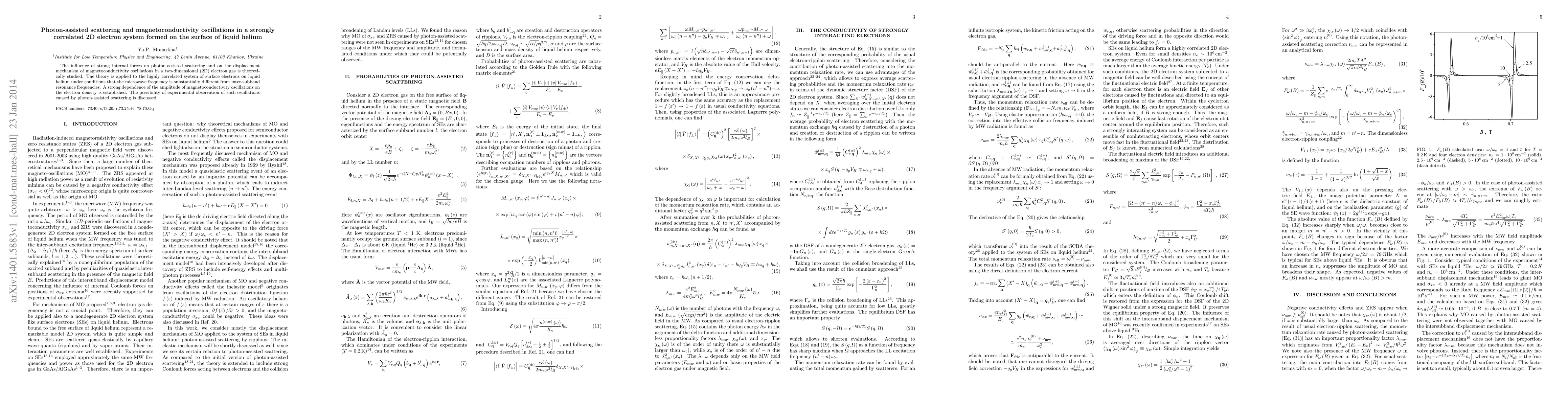 This paper theoretically investigates the impact of strong internal forces on photon-assisted scattering and magnetoconductivity oscillations in a 2D electron gas on liquid helium. It establishes a strong dependence of oscillation amplitude on electron density and discusses the potential for experimental observation of these phenomena.