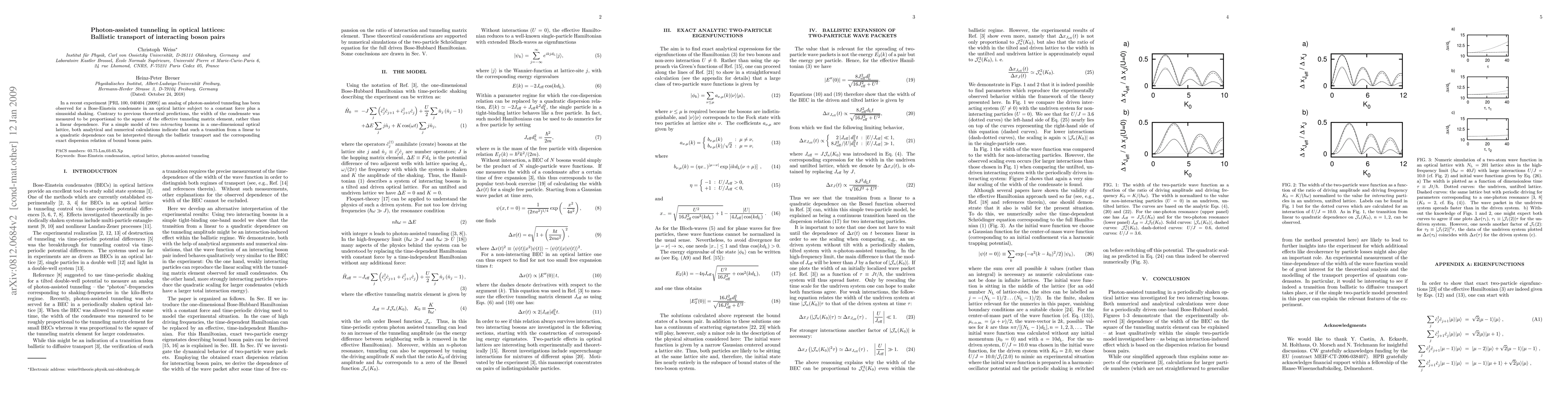 This paper reports an experimental observation of photon-assisted tunneling in optical lattices, where interacting boson pairs exhibit ballistic transport. Contrary to earlier predictions, the condensate width scales quadratically with the tunneling matrix element, attributed to the exact dispersion relation of bound boson pairs.