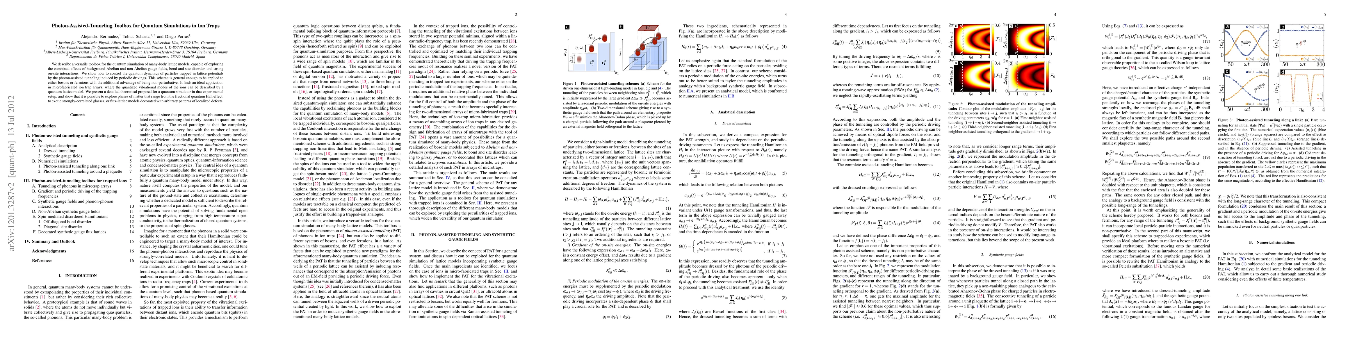 This paper presents a versatile toolbox for quantum simulations in ion traps using photon-assisted tunneling, enabling exploration of complex many-body lattice models, including Abelian and non-Abelian gauge fields, and various interactions. The method is non-perturbative and applicable to both bosons and fermions, with potential to study diverse phases of matter.