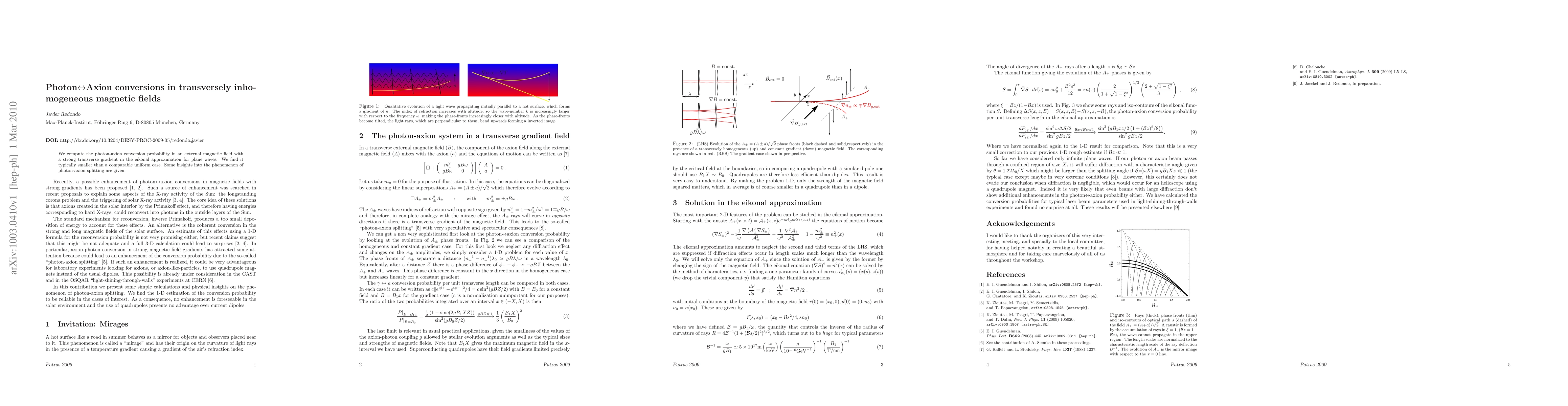 The paper presents a novel approach to estimating photon-axion conversion probabilities in transversely inhomogeneous magnetic fields using eikonal approximation.