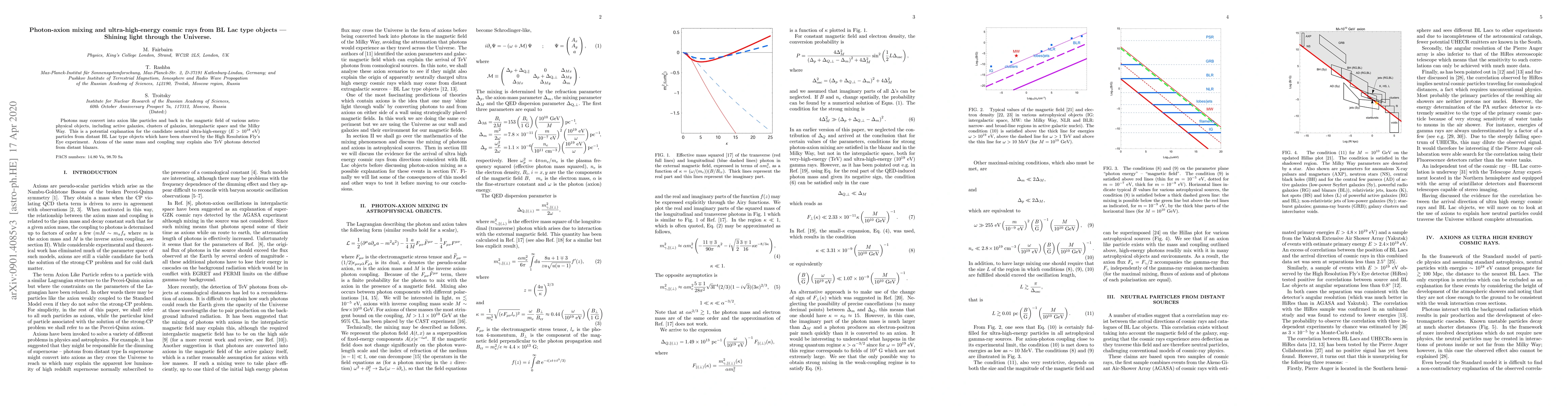 Photons may convert into axion like particles and back in the magnetic field of various astrophysical objects, including active galaxies, clusters of galaxies, intergalactic space and the Milky Way. This is a potential explanation for the candidate neutral ultra-high-energy (E>10^18 eV) particles from distant BL Lac type objects which have been observed by the High Resolution Fly's Eye experiment. Axions of the same mass and coupling may explain also TeV photons detected from distant blazars.