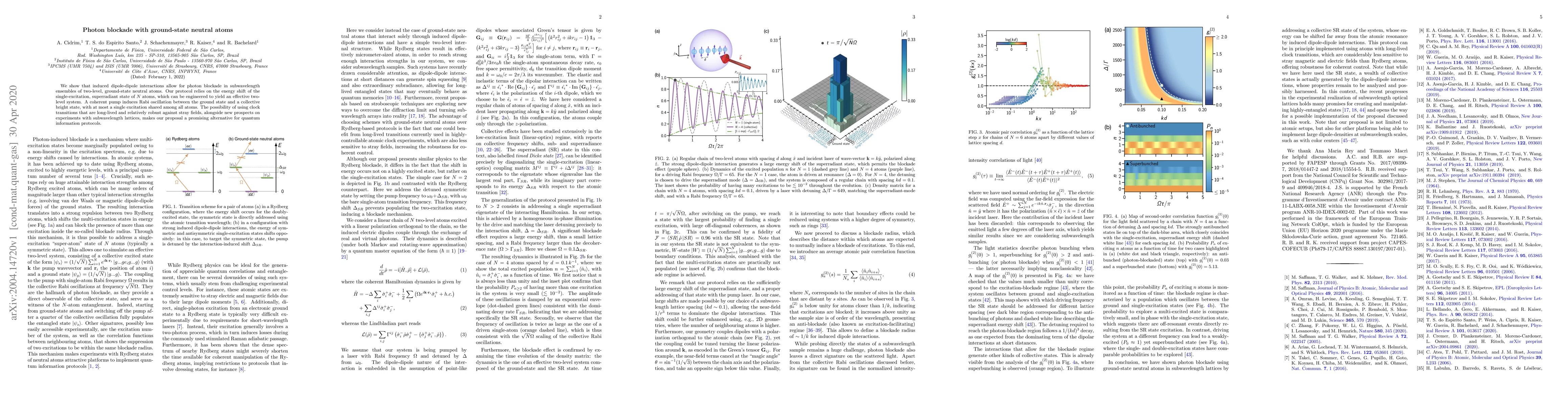 This paper demonstrates a photon blockade using ground-state neutral atoms through induced dipole-dipole interactions, relying on the energy shift of a superradiant state. The protocol employs a coherent pump to induce Rabi oscillations, ensuring at most one photon is shared among atoms, offering a robust alternative for quantum information protocols.