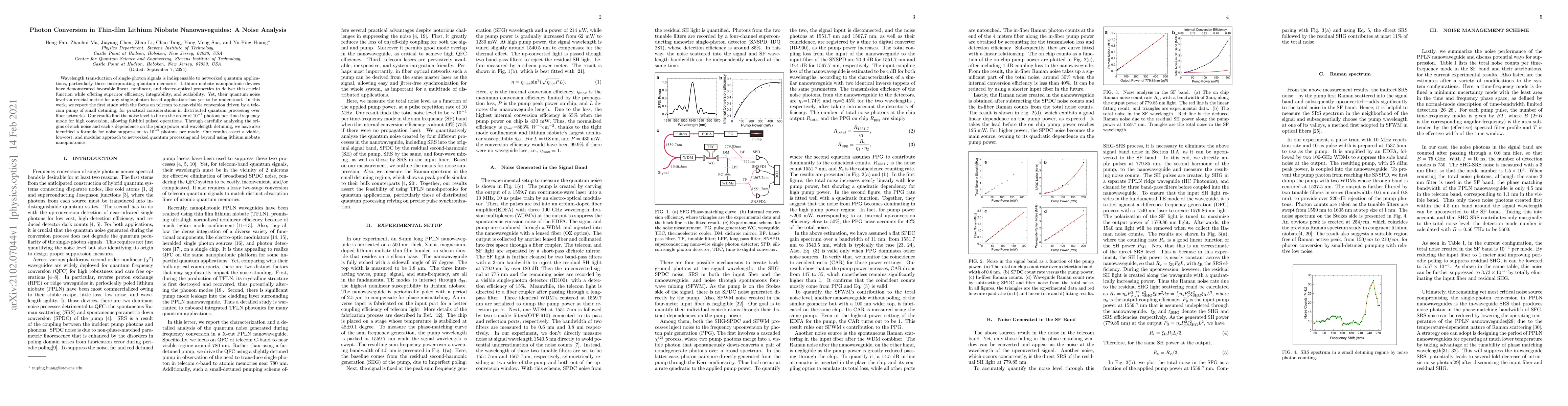This paper investigates the photon conversion efficiency and quantum noise levels in thin-film lithium niobate nanowaveguides for telecom to near-visible wavelength transduction. The study reveals a noise level of $10^{-4}$ photons per mode, and through analysis, proposes a method to suppress noise to $10^{-5}$ photons per mode, demonstrating a promising approach for scalable, low-cost quantum networking.