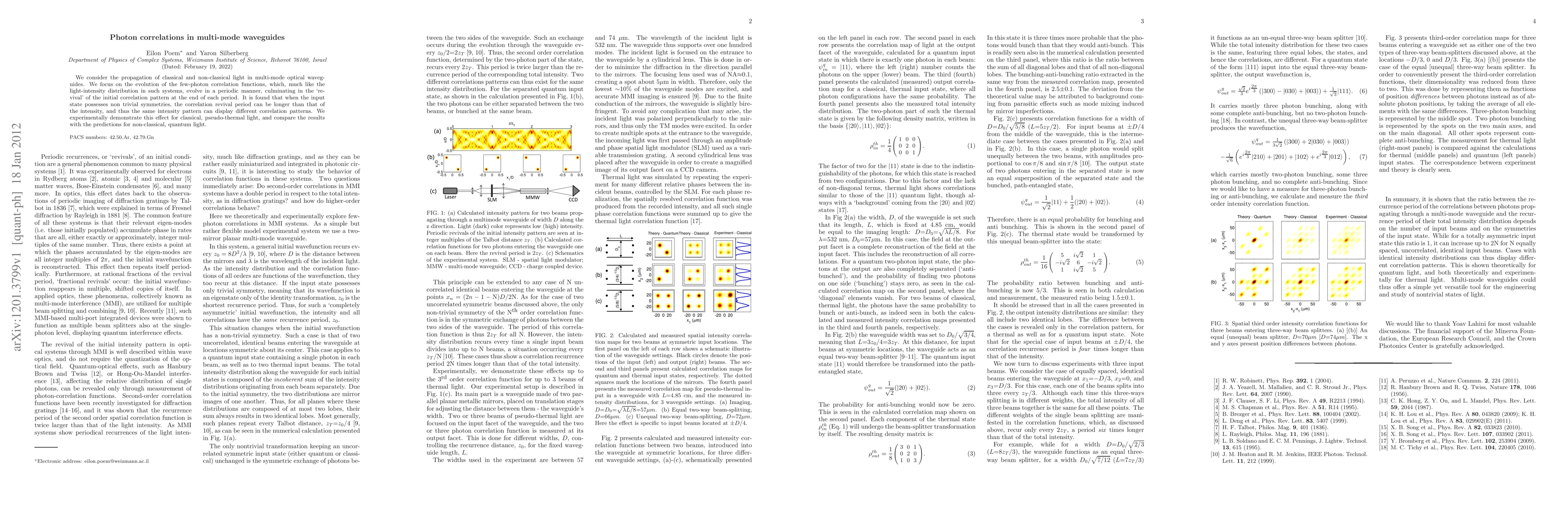 We consider the propagation of classical and non-classical light in multi-mode optical waveguides. We focus on the evolution of the few-photon correlation functions, which, much like the light-intensity distribution in such systems, evolve in a periodic manner, culminating in the 'revival' of the initial correlation pattern at the end of each period. It is found that when the input state possesses non trivial symmetries, the correlation revival period can be longer than that of the intensity, and thus the same intensity pattern can display different correlation patterns. We experimentally demonstrate this effect for classical, pseudo-thermal light, and compare the results with the predictions for non-classical, quantum light.