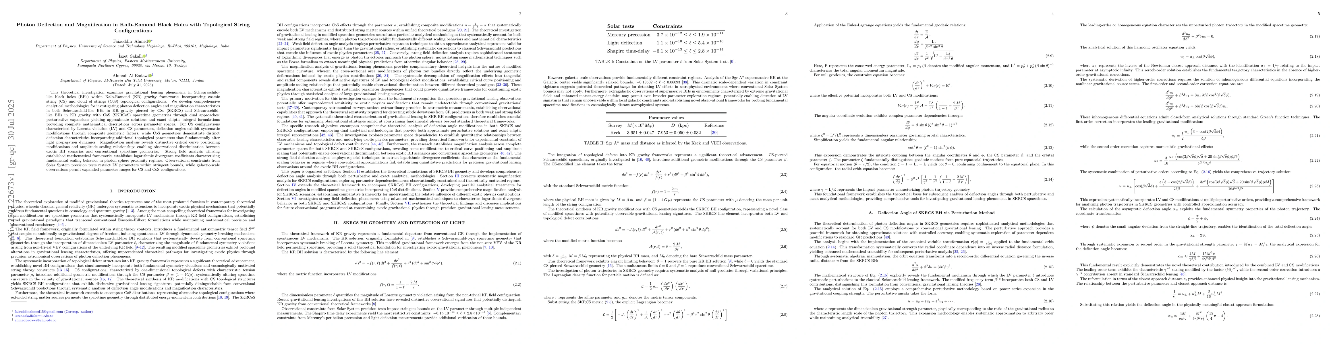Theoretical investigation using Kalb-Ramond gravity frameworks incorporating cosmic string and cloud of strings topological configurations, employing perturbative expansions and exact elliptic integral formulations for photon deflection angles and magnification characteristics.