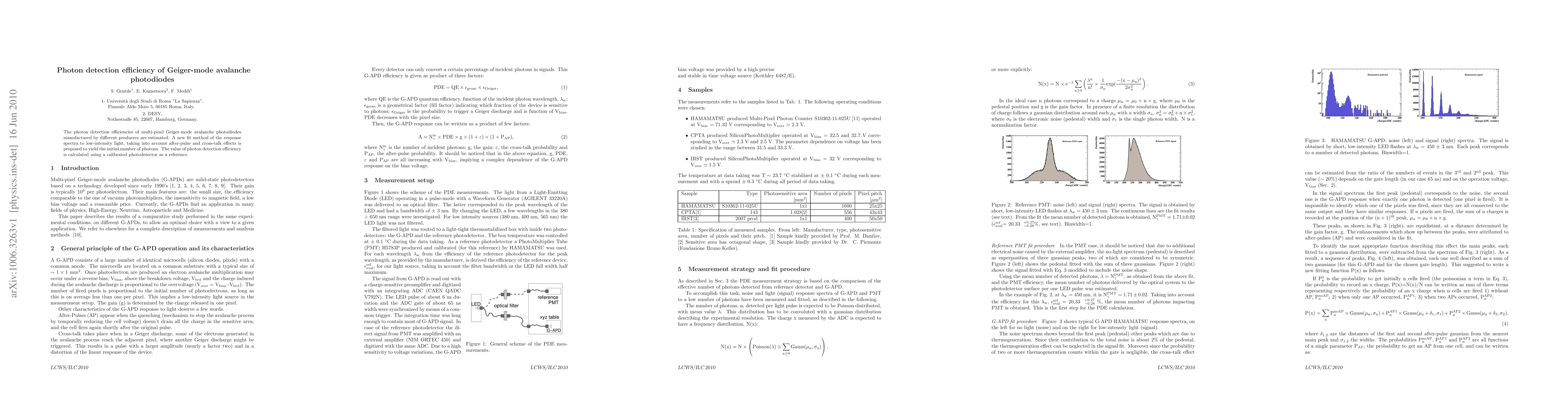 The paper presents a new fitting method to estimate photon detection efficiencies of G-APDs, accounting for after-pulse and cross-talk effects, and an improved fitting procedure for CPTA G-APDs.