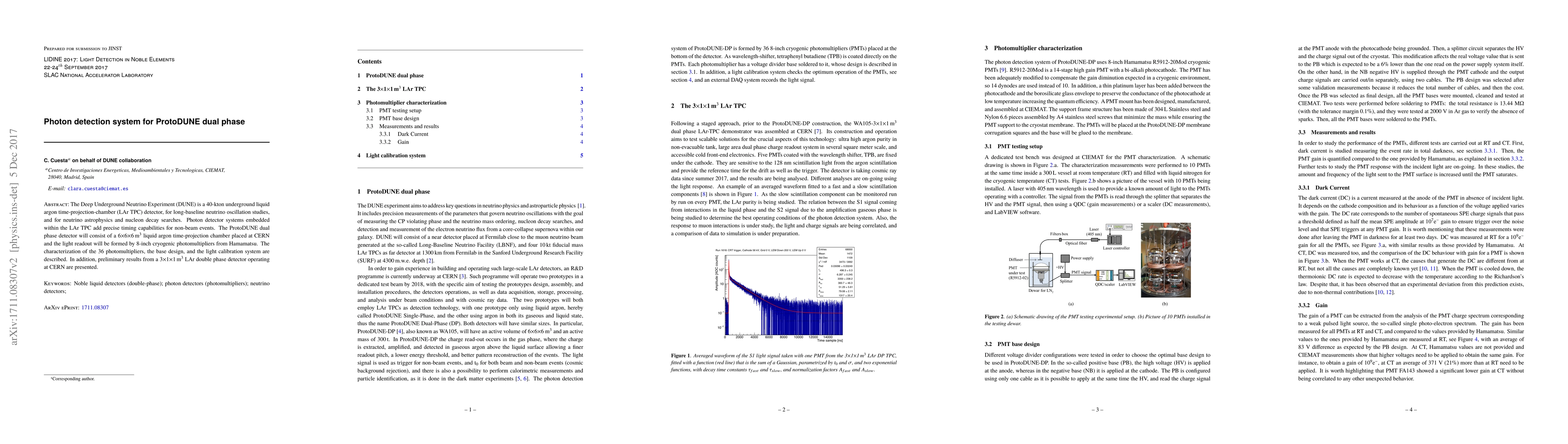 The Deep Underground Neutrino Experiment (DUNE) is a 40-kton underground liquid argon time-projection-chamber (LAr TPC) detector, for long-baseline neutrino oscillation studies and for neutrino astrophysics and nucleon decay searches. Photon detector systems embedded within the LAr TPC add precise timing capabilities for non-beam events. The ProtoDUNE dual phase detector will consist of a 6x6x6 m3 liquid argon time-projection chamber placed at CERN and the light readout will be formed by 8-inch cryogenic photomultipliers from Hamamatsu. The characterization of the 36 photomultipliers, the base design, and the light calibration system are described. In addition, preliminary results from a 3x1x1 m3 LAr double phase detector operating at CERN are presented.