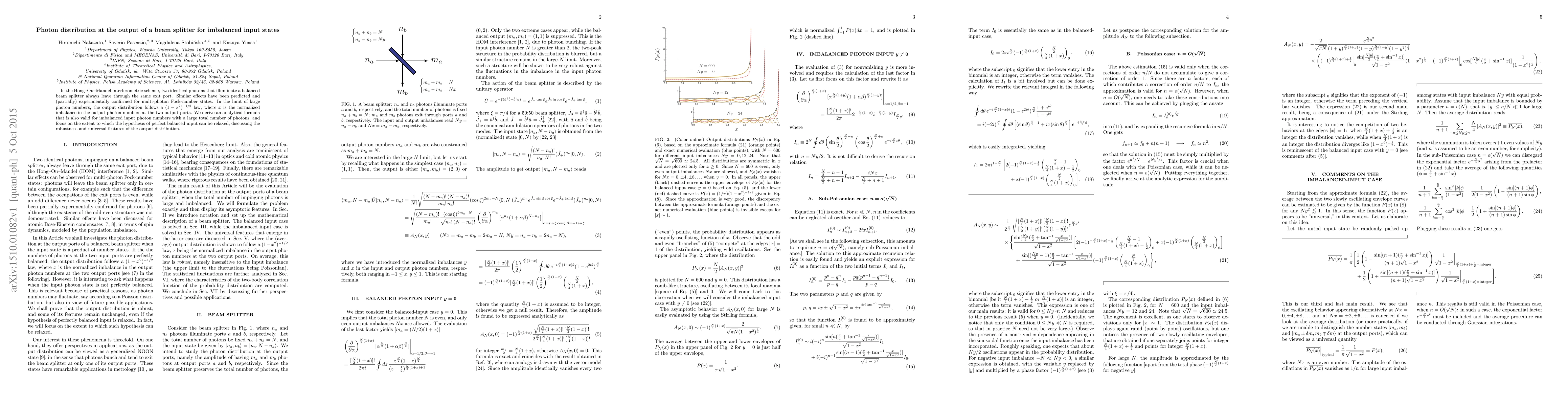This paper derives an analytical formula for the photon distribution at the output of a beam splitter when the input states are imbalanced, extending the Hong-Ou-Mandel effect to large photon numbers. It examines the robustness of the output distribution against input imbalance and highlights universal features regardless of the degree of imbalance.