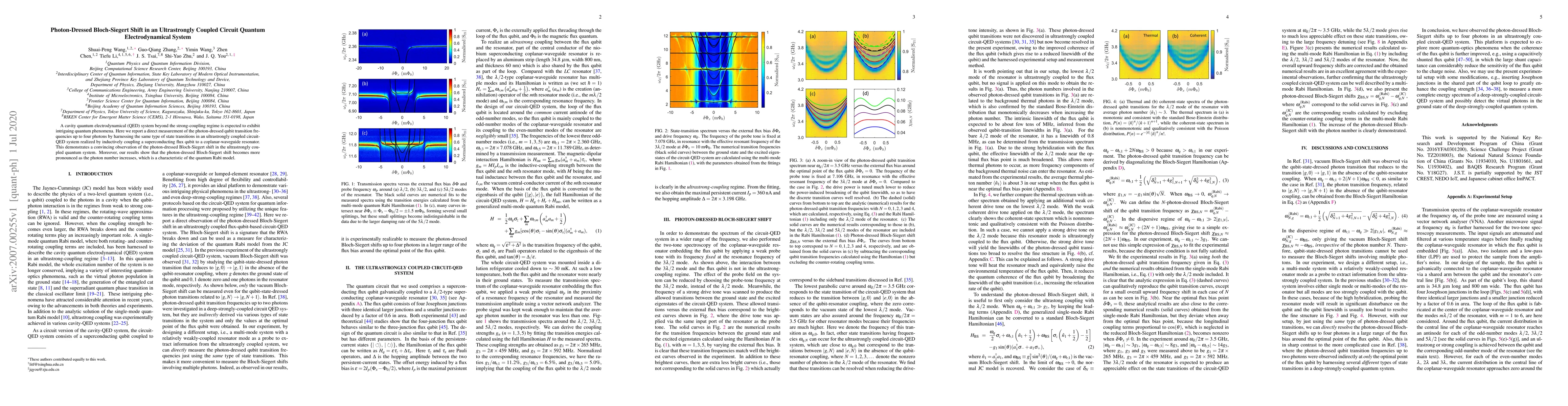 This paper reports the direct measurement of photon-dressed qubit transition frequencies in an ultrastrongly coupled circuit quantum electrodynamical system, demonstrating the photon-dressed Bloch-Siegert shift. The study shows that this shift becomes more significant with increasing photon number, aligning with the quantum Rabi model.