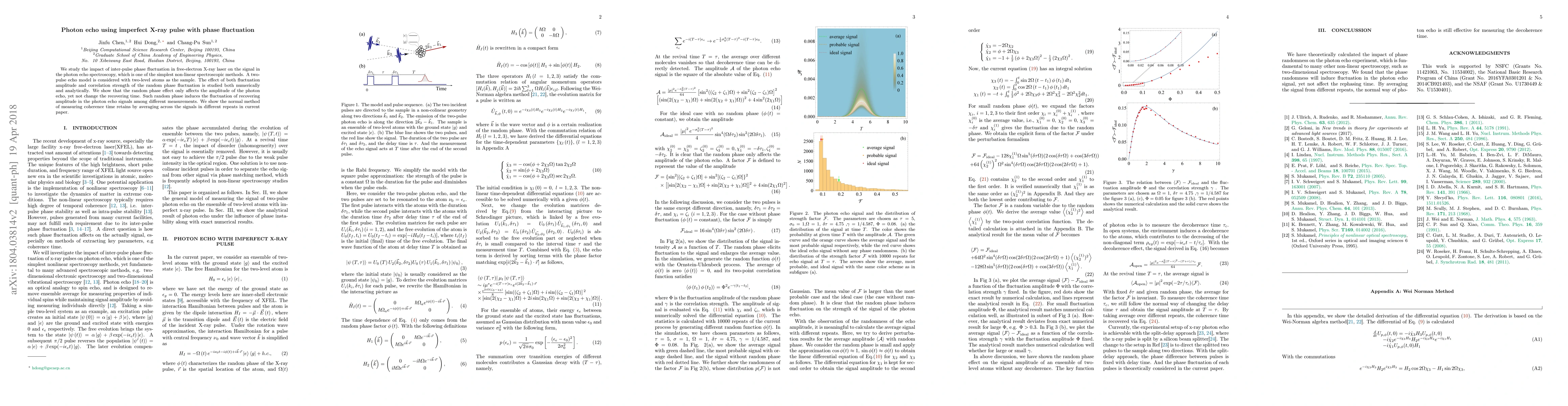 We study the impact of inter-pulse phase fluctuation in free-electron X-ray laser on the signal in the photon echo spectroscopy, which is one of the simplest non-linear spectroscopic methods. A two-pulse echo model is considered with two-level atoms as the sample. The effect of both fluctuation amplitude and correlation strength of the random phase fluctuation is studied both numerically and analytically. We show that the random phase effect only affects the amplitude of the photon echo, yet not change the recovering time. Such random phase induces the fluctuation of recovering amplitude in the photon echo signals among different measurements. We show the normal method of measuring coherence time retains by averaging across the signals in different repeats in current paper.