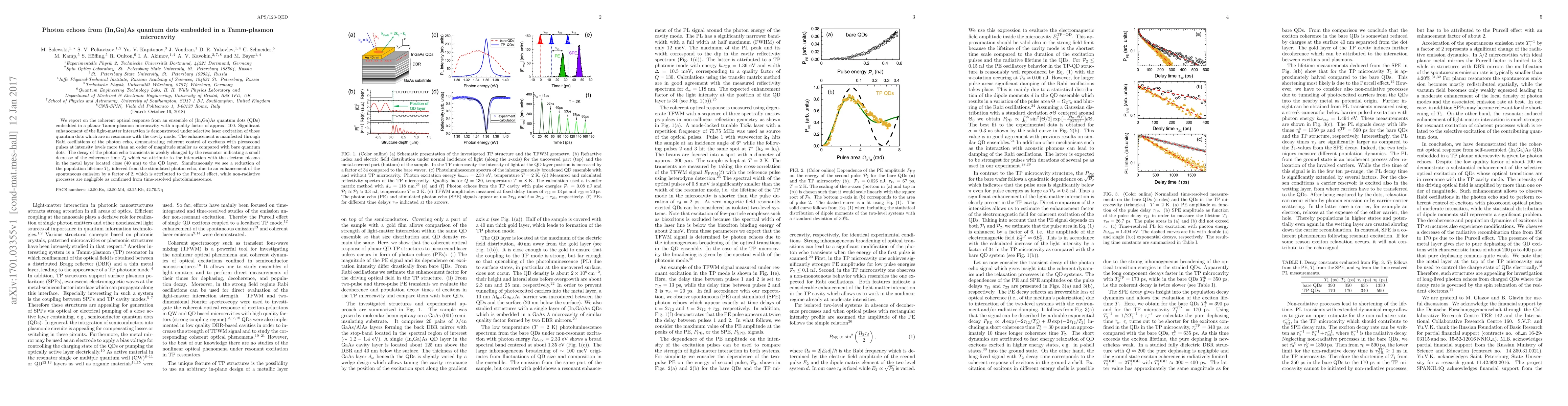 This paper demonstrates coherent optical response and enhanced light-matter interaction from (In,Ga)As quantum dots in a Tamm-plasmon microcavity, showing Rabi oscillations in photon echo and coherent control of excitons with picosecond pulses. The Purcell effect enhances spontaneous emission, while coherence time $T_2$ slightly decreases due to electron plasma interaction.
