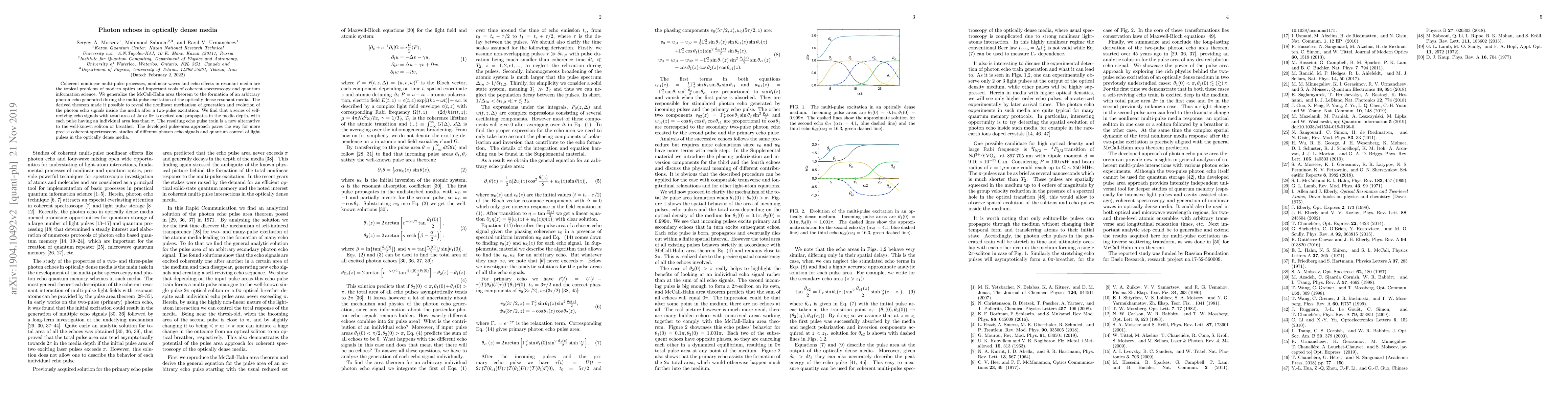 This paper generalizes the McCall-Hahn area theorem to describe photon echo formation in optically dense media, revealing a nonlinear mechanism for generating self-reviving echo signals. The study introduces a new pulse-area approach that enables more precise coherent spectroscopy and quantum control of light pulses.