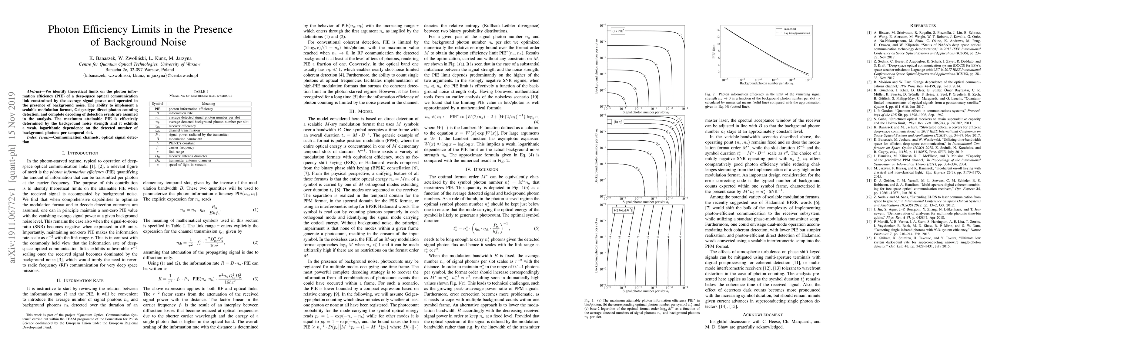 We identify theoretical limits on the photon information efficiency (PIE) of a deep-space optical communication link constrained by the average signal power and operated in the presence of background noise. The ability to implement a scalable modulation format, Geiger-type direct photon counting detection, and complete decoding of detection events are assumed in the analysis. The maximum attainable PIE is effectively determined by the background noise strength and it exhibits a weak, logarithmic dependence on the detected number of background photons per temporal slot.